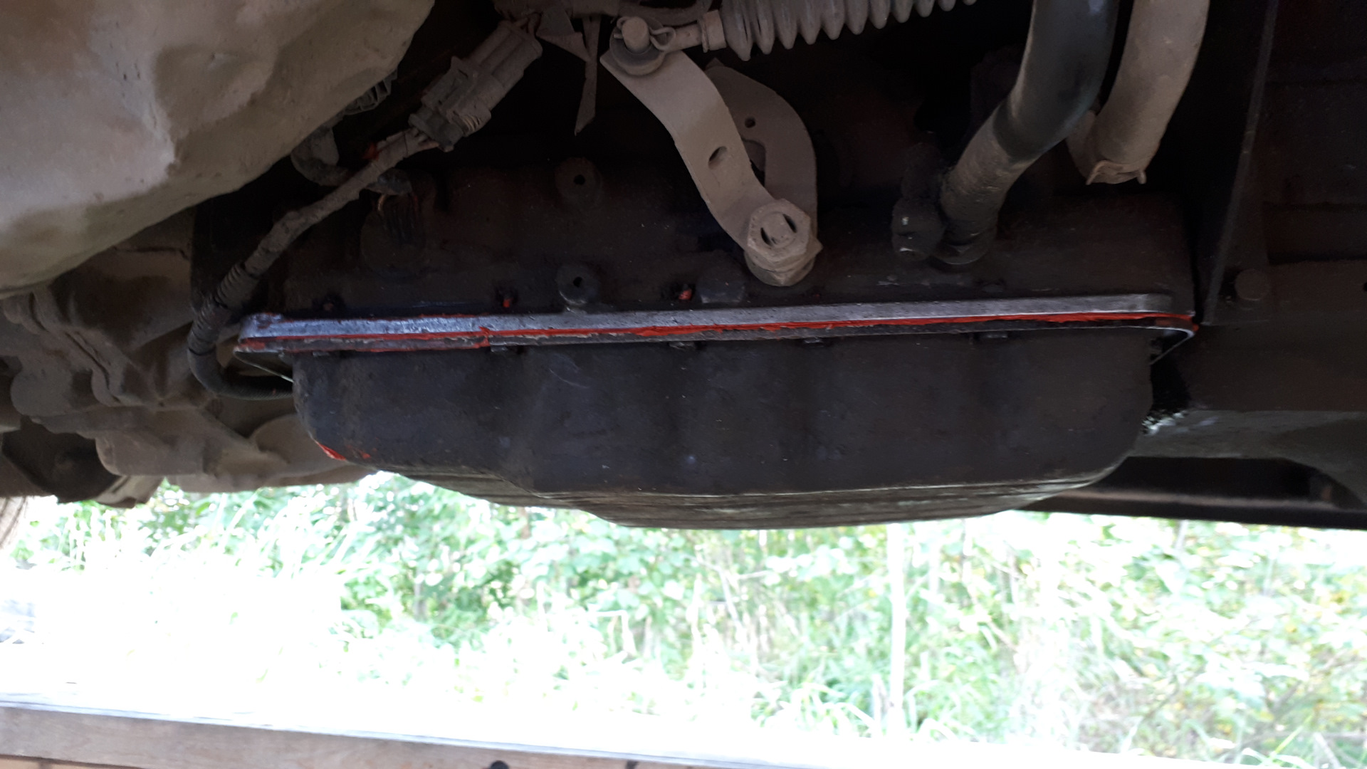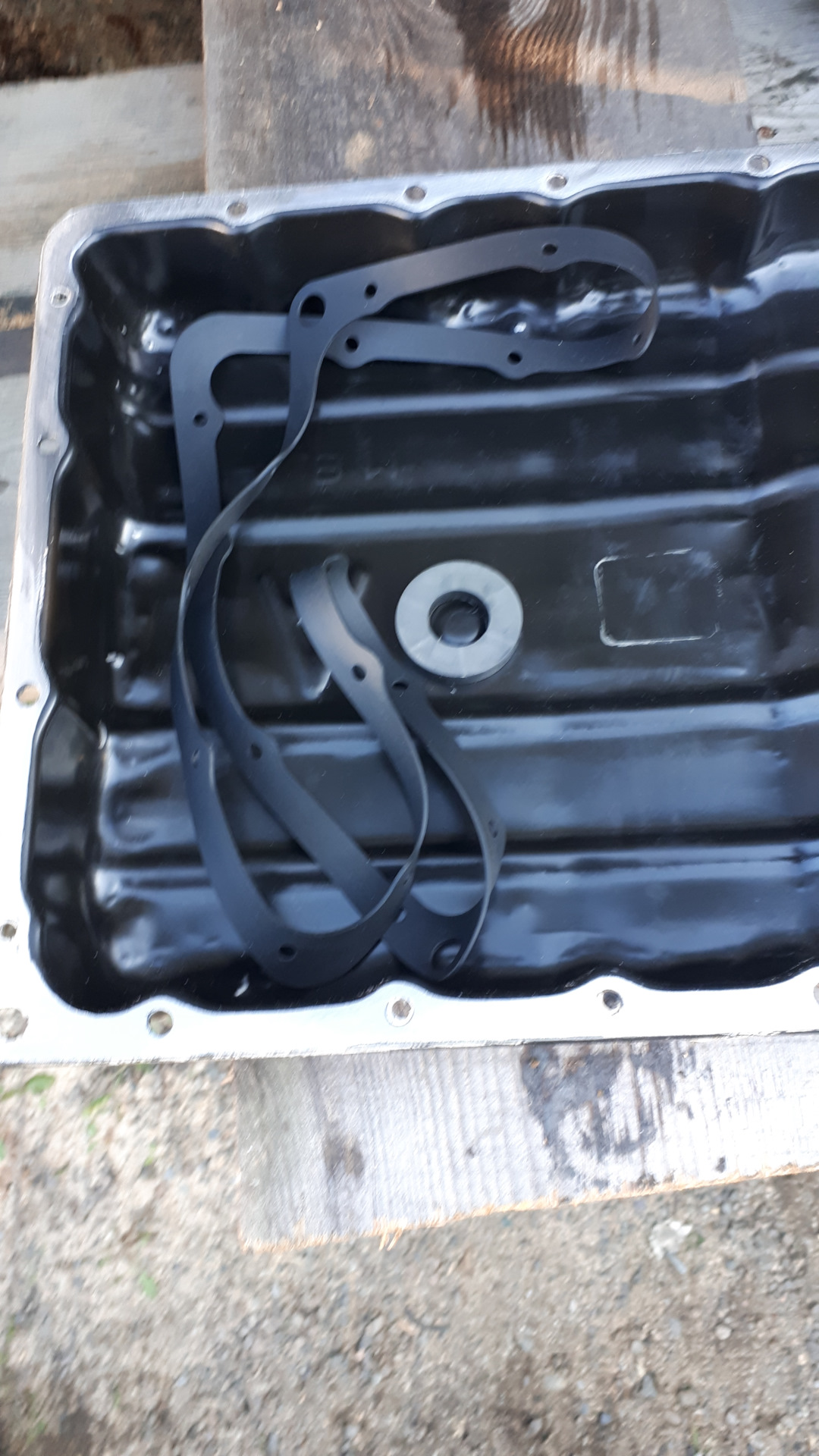 и собираем. Видимо, плоскости у поддона уже не те, т.к. прокладку очень нехорошо выдавило. Пришлось снова все разобрать и, как обычно, обойтись одним герметиком