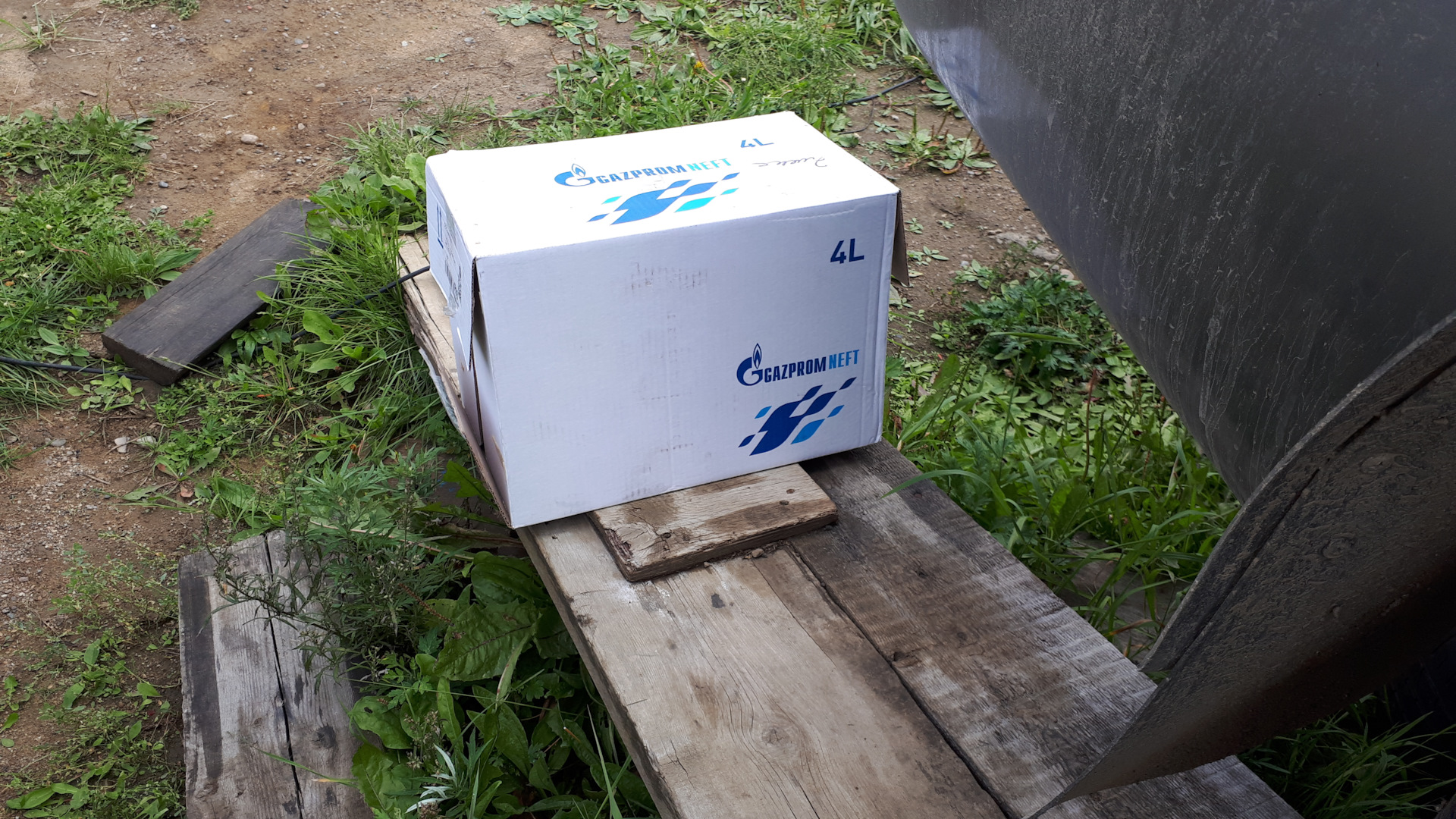 На последней итерации, при заливке последней порции нового масла я отрегулировал уровень по нижней риске щупа и снова слил все что можно слить, на этот раз в чистую тару, она была непрозрачная, потому показать текущее состояние масла в моей коробке на просвет, увы, не смогу.