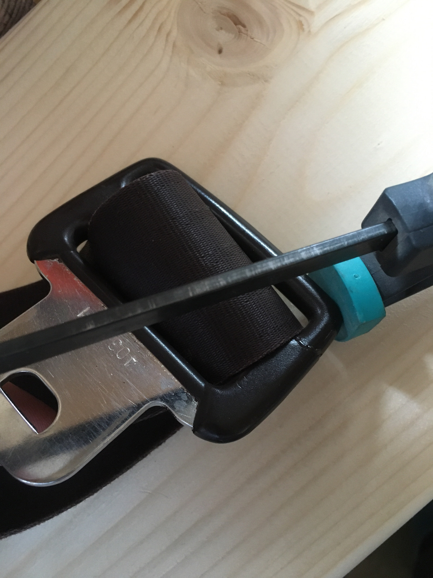 Теперь вернемся к деталям. Машина у меня 1984 года выпуска, давно жила в РФ и жила, собственно, не в самых лучших условиях. Разбирая салон обнаруживал много поверхностной ржавчины на металлических деталях (про это было в статье про сиденья — я там красил салазки). Поэтому, начав разбирать сложенные элементы салона, достал ремни и не смог оставить всё это рыжее великолепие. Зачистил и задул, чтобы дальше не лезло.