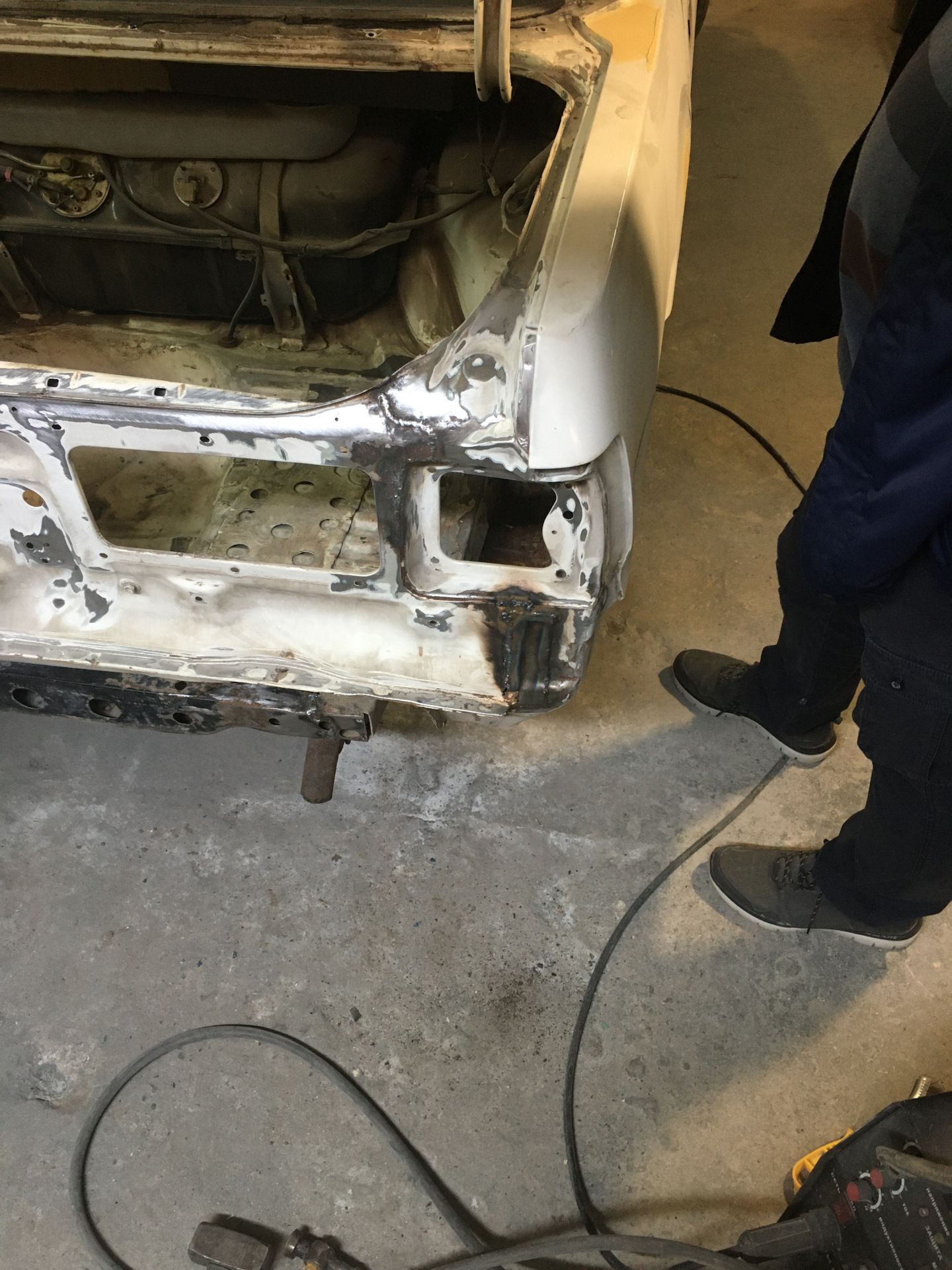 В это же время велись работы по кузову. После зачистки стало видно его не самое лучшее состояние местами, а если быть конкретным — заднее левое крыло, задняя панель кузова и в паре мест — пороги.