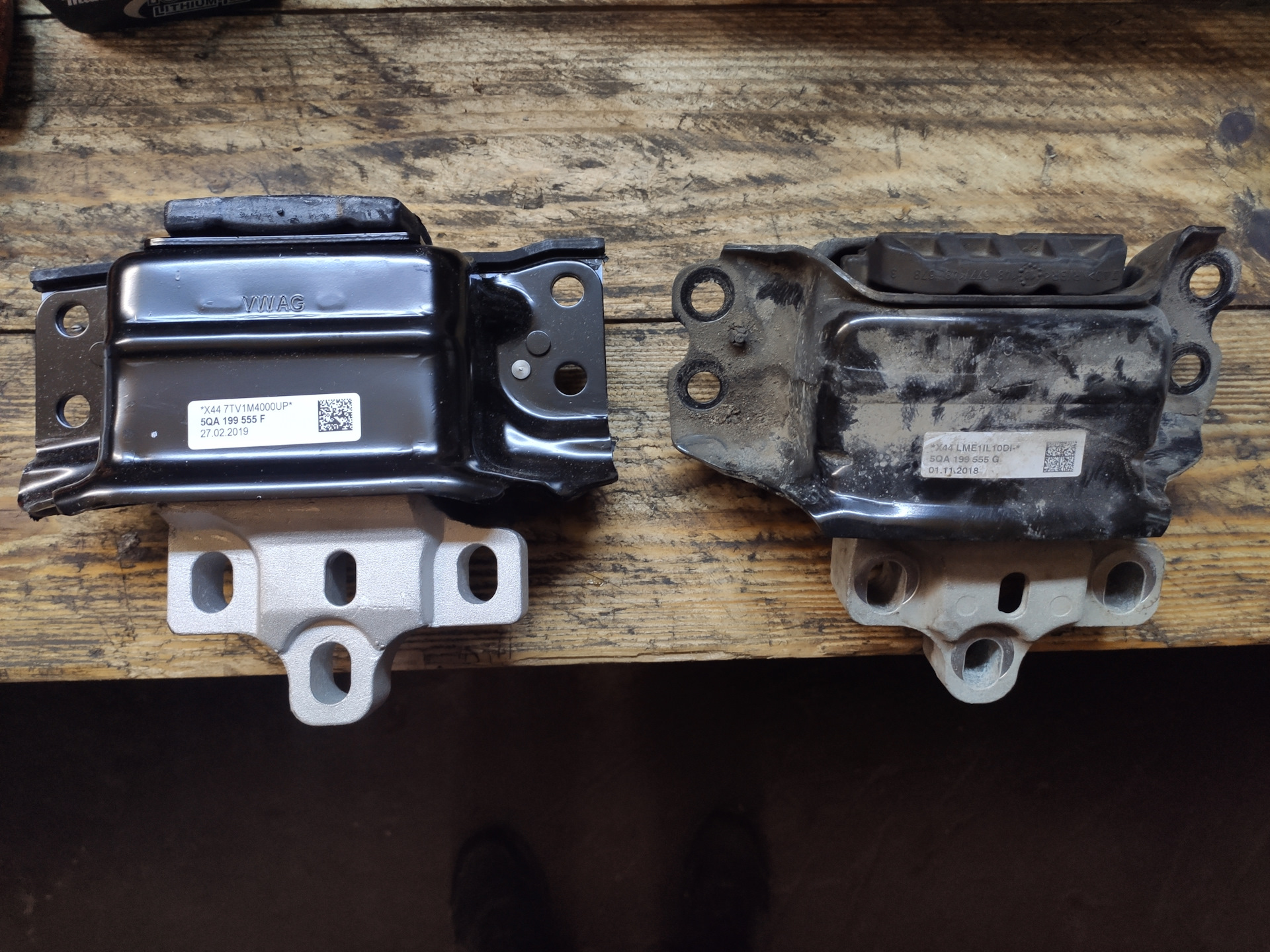 Давненько купил сайленты 5Q0407183L, хотел поменять, но возникла засада с левым рычагом, при откручивании переднего болта его невозможно вытащить — упирается в DSG ( По мануалу нужно открутить подрамник и опустить его, мне эта затея не понравилась, так как сход-развал у нас регулируется именно подрамником и потом очень сложно вывести его в норму, есть соответствующая тема на форуме. Но тут на драйве появилась запись о замене опоры DSG на гидроопору 5QA199555F www.drive2.ru/l/567411497802663382/ и я решил попробовать поставить такую же себе, а при замене опоры поддомкратить коробку повыше, чтобы болт рычага вышел. Вобщем операция была выполнена успешно, всё получилось. Скрип сайлентов пока не наблюдаю, но и погода стоит плохая. Стоить отметить про впечатления от новой гидроопоры, я бы не сказал, что что-то сильно поменялось. Да, как-то по-лучше стало переключение скорости 1-2, но кардинально ничего не поменялось. Вообщем как-то так, всем удачи !