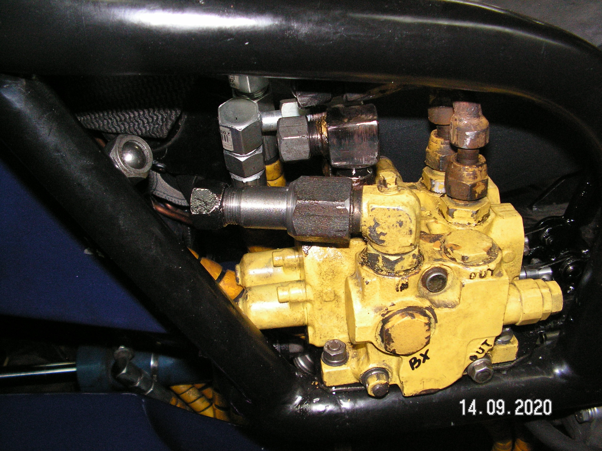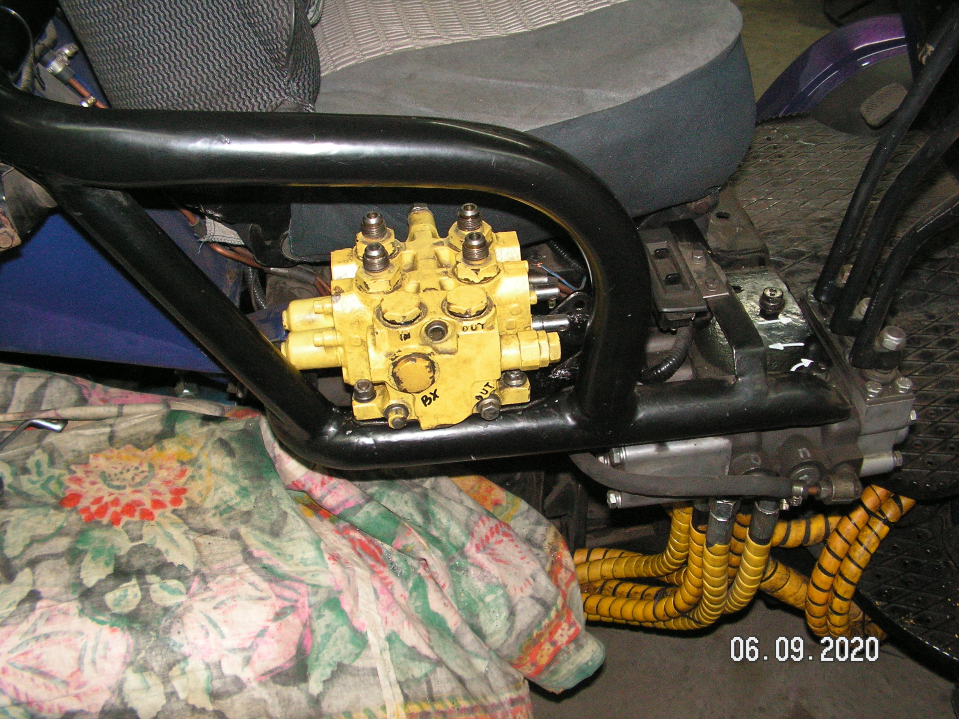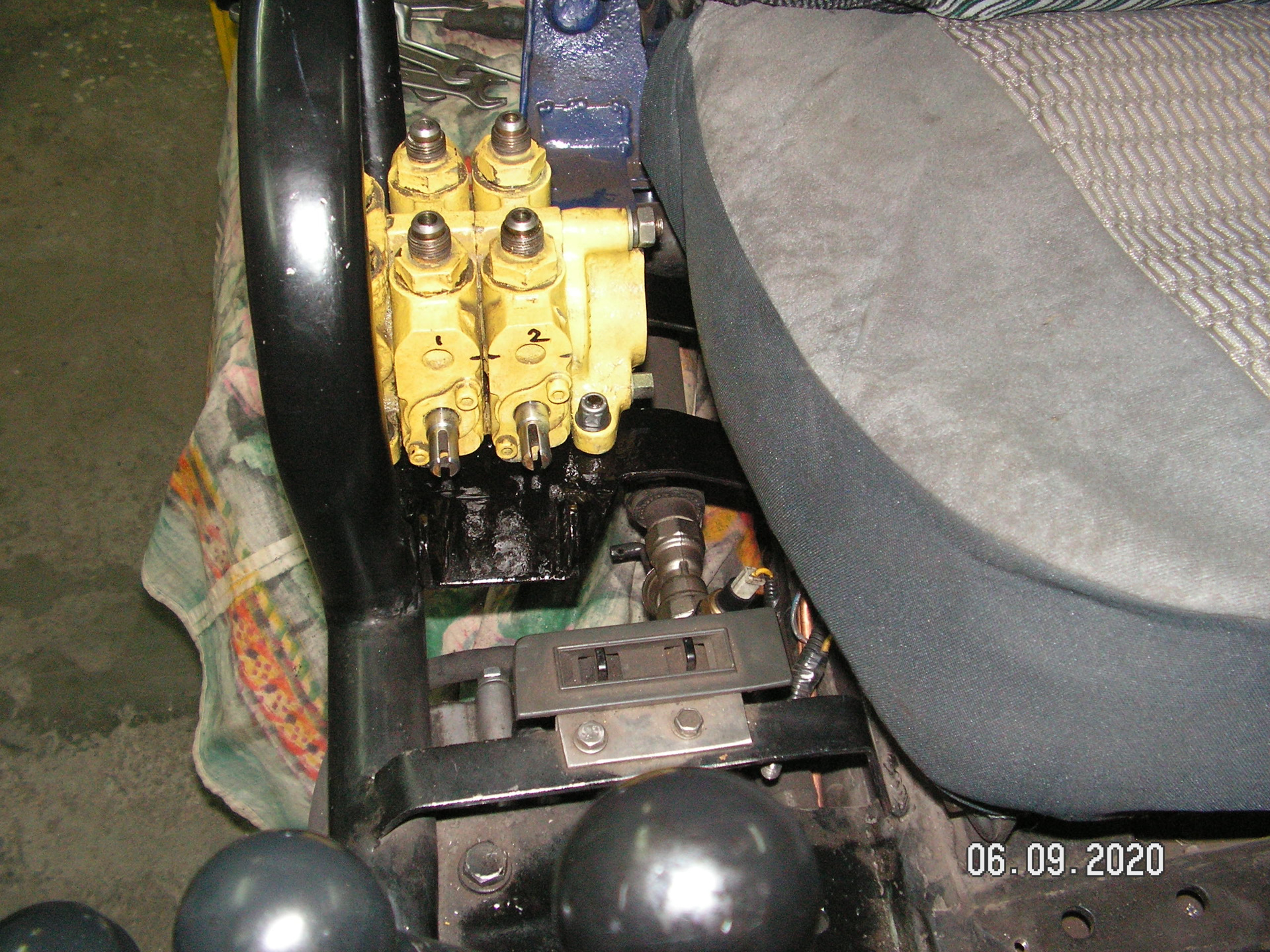 Давно у меня лежит четырех секционный гидрораспределитель с погрузчика. Изначально я его покупал для погрузчика. Но потом сделал минитрактор. И распределитель не пригодился. А тут решил установить еще один (дополнительный) распределитель. Вот думаю и поставлю я этот дополнительный распределитель. Все равно валяется без толку. Изначально хотел оставить три секции. Но потом решил оставить только две. Хорошо, что он разбирается. И секции можно убирать или добавлять. Места для трех секций на тракторе я не нашел. Пришлось оставить две. Места занимают меньше. И установить его получилось около основного (МР-80). Изготовил кронштейн. Закрепил его на раме. Закрепил распределитель. Изготовил переходные штуцеры. Подсоединил гидрошланги. Провел испытание гидросистемы. А она отказалась работать с двумя паралельно подключенными распределителями. Видимо придется еще с клапаном помудрить? Теперь буду думать как победить эту проблему.