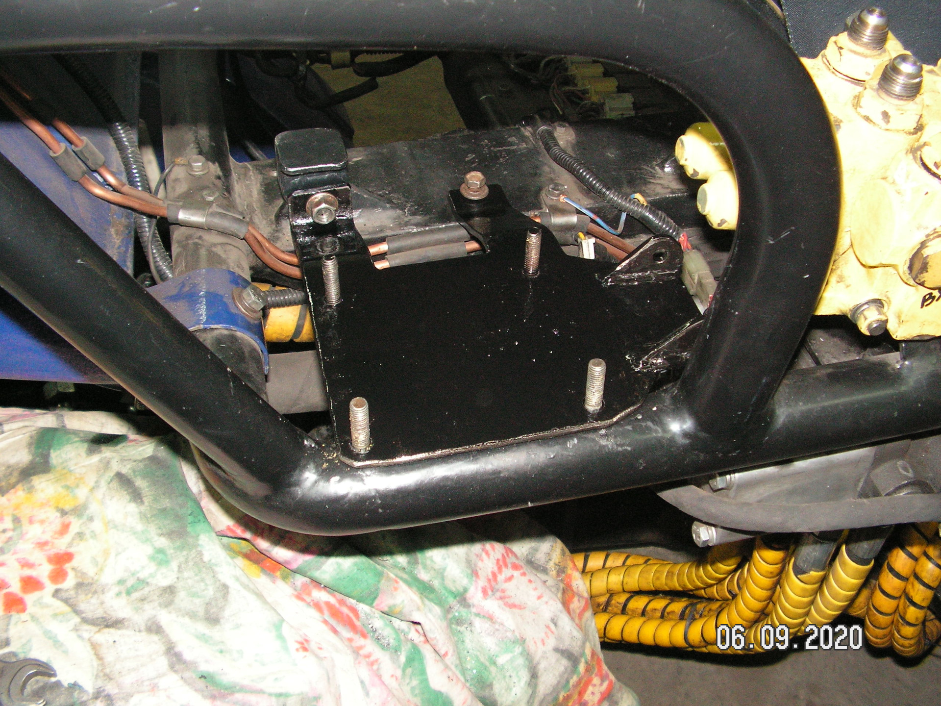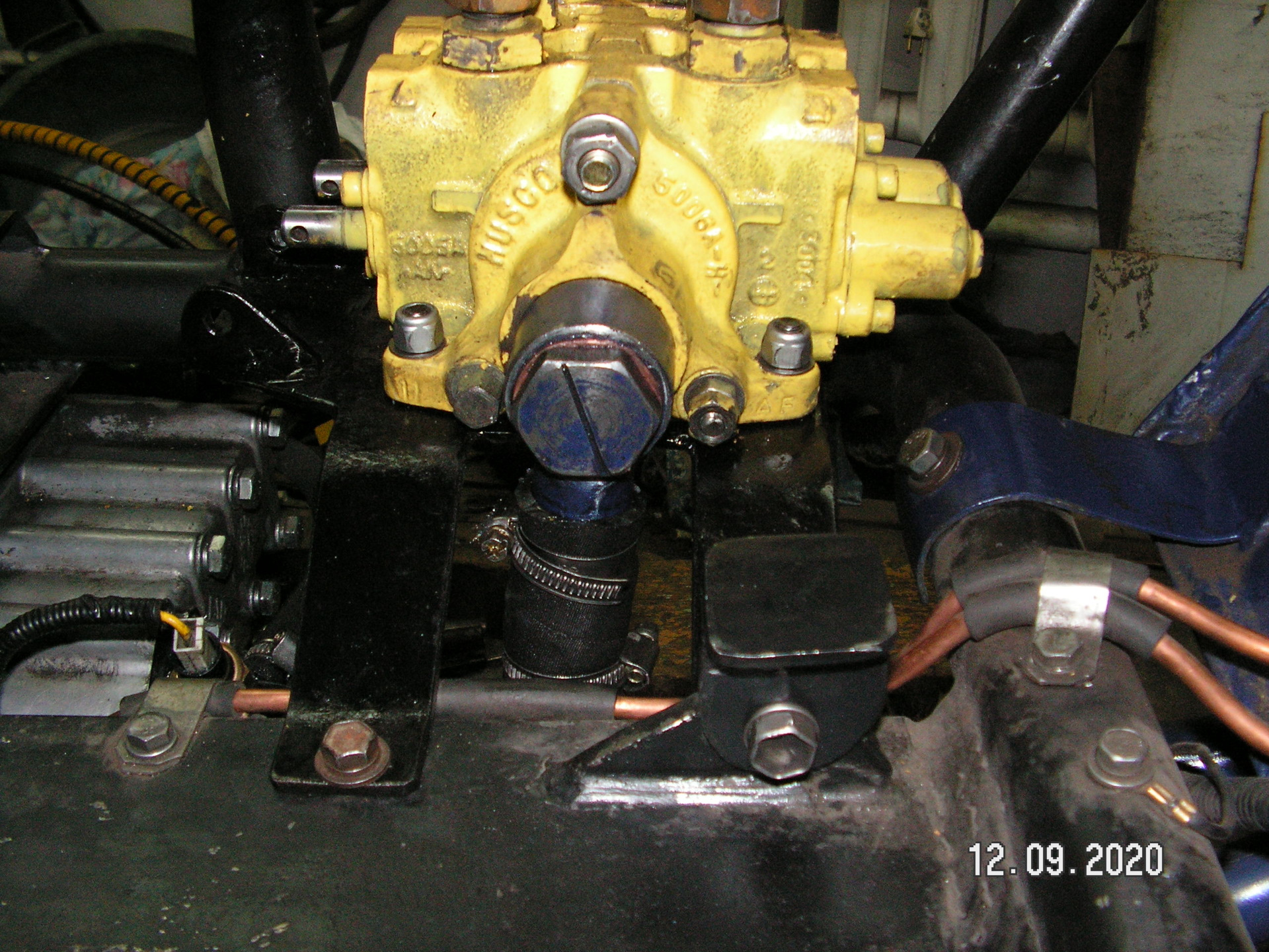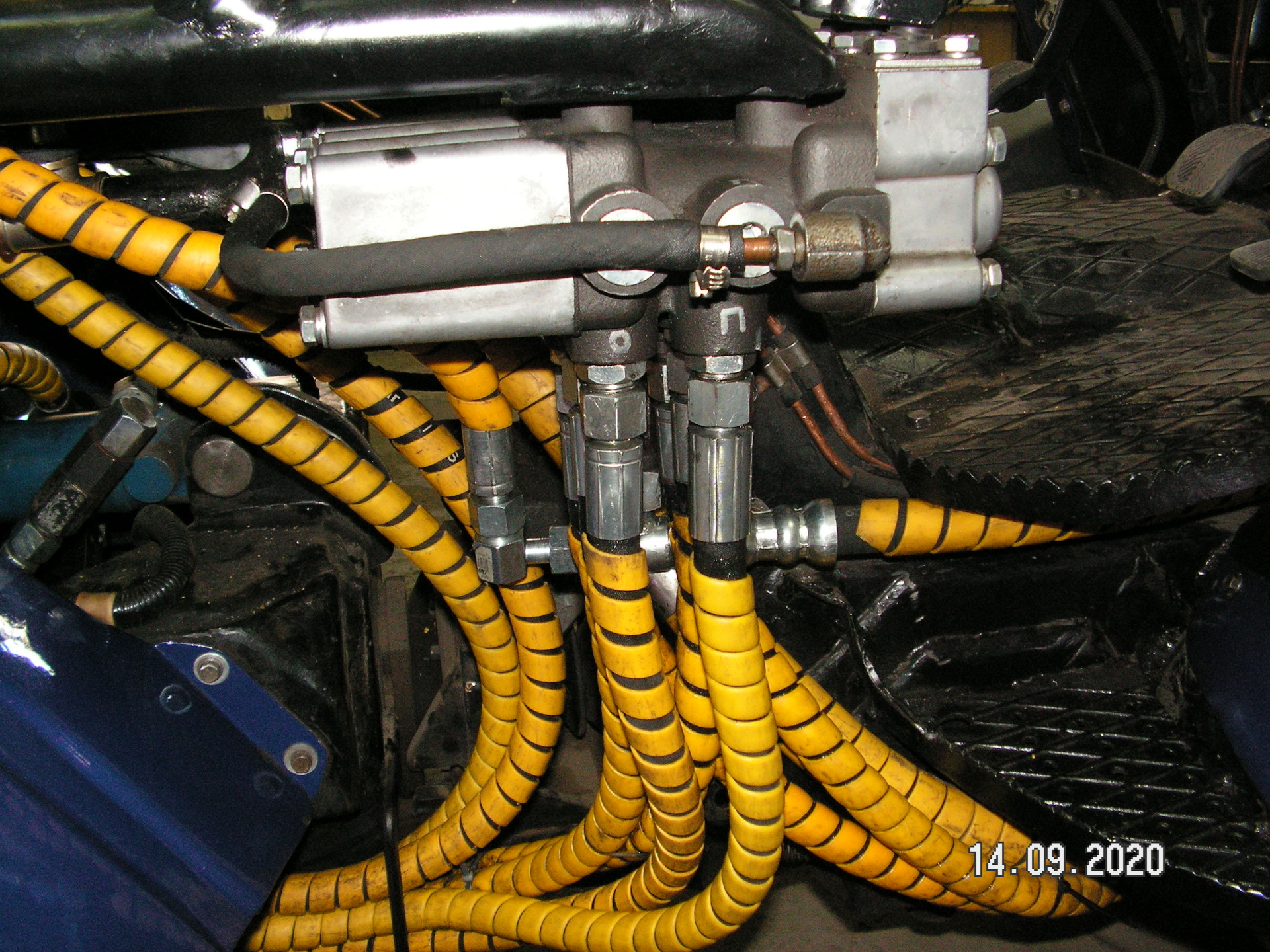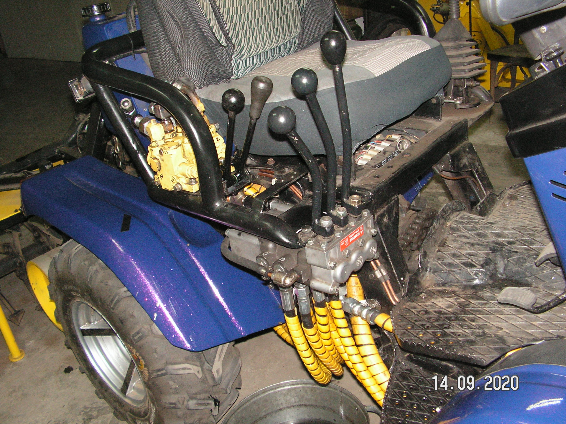 Давно у меня лежит четырех секционный гидрораспределитель с погрузчика. Изначально я его покупал для погрузчика. Но потом сделал минитрактор. И распределитель не пригодился. А тут решил установить еще один (дополнительный) распределитель. Вот думаю и поставлю я этот дополнительный распределитель. Все равно валяется без толку. Изначально хотел оставить три секции. Но потом решил оставить только две. Хорошо, что он разбирается. И секции можно убирать или добавлять. Места для трех секций на тракторе я не нашел. Пришлось оставить две. Места занимают меньше. И установить его получилось около основного (МР-80). Изготовил кронштейн. Закрепил его на раме. Закрепил распределитель. Изготовил переходные штуцеры. Подсоединил гидрошланги. Провел испытание гидросистемы. А она отказалась работать с двумя паралельно подключенными распределителями. Видимо придется еще с клапаном помудрить? Теперь буду думать как победить эту проблему.