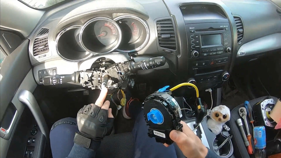 но я к тому, что датчик положения руля, то так покрутил, то так, потом саму улитку защёлкнул, а провода мучился потом защёлкивать, далее то вытащил блокиратор, покрутил улиткой, то снова обратно вставил блокиратор, подушку накинул, потом вспомнил, что гайку забыл накинуть на руль и закрутить!