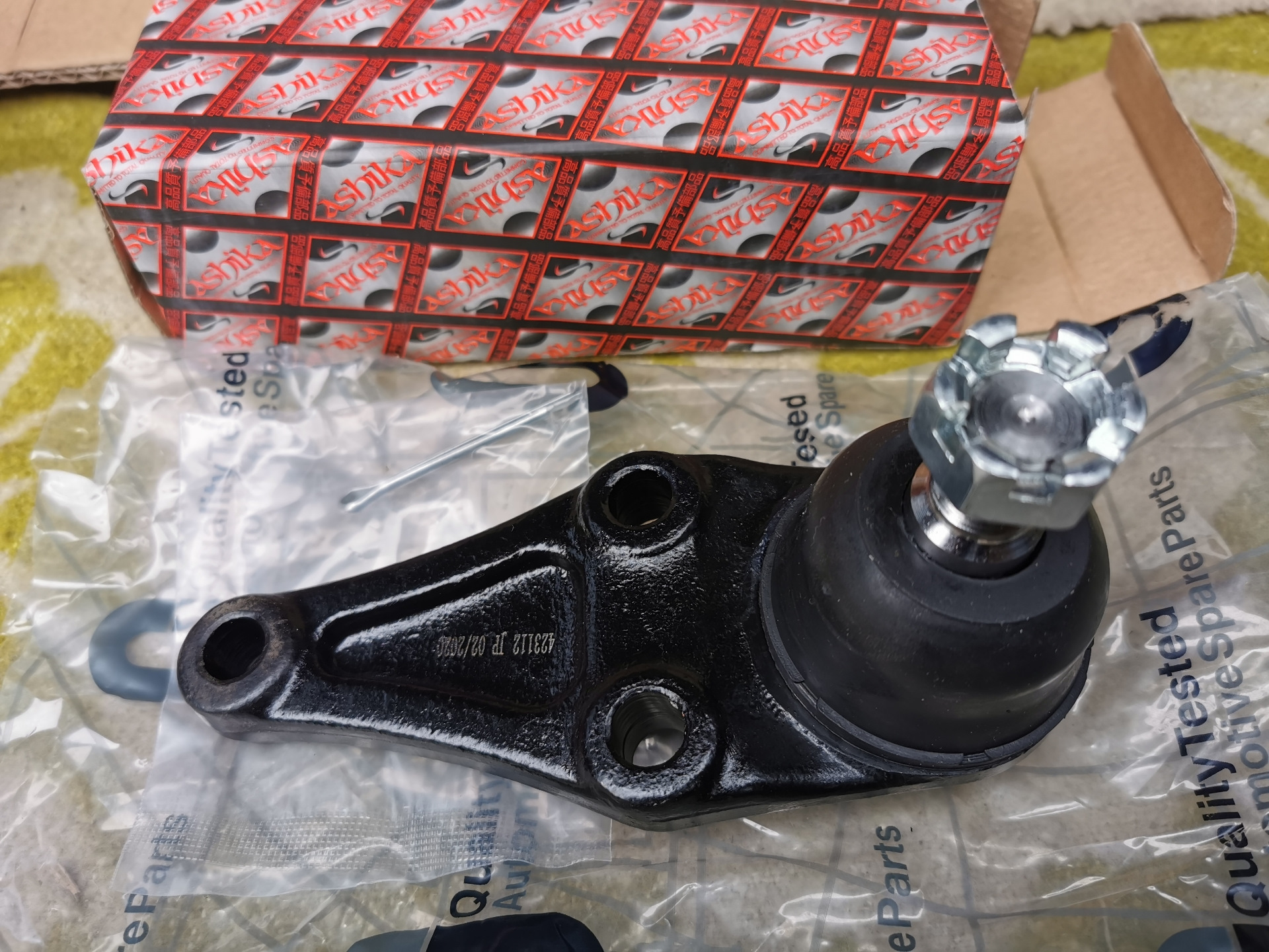 Заменил передние шаровые верх низ, покупал там же в Евро Авто модель Ashika(верх 73-05-509/низ 73-05-510). Два дня делов и поменено. Верхние легко поменял а нижние пришлось пильнуть чтобы не разбирать много, поддрмкратил нижний рычаг и вытащил так же вставлял. В нижние закрутил два болта те которые упираются в гранату вставил снизу и закрутил а дальний сверху вставил и закрутил. Чтобы в следующий раз было легче. Всё держится ничего не раскручивается.
