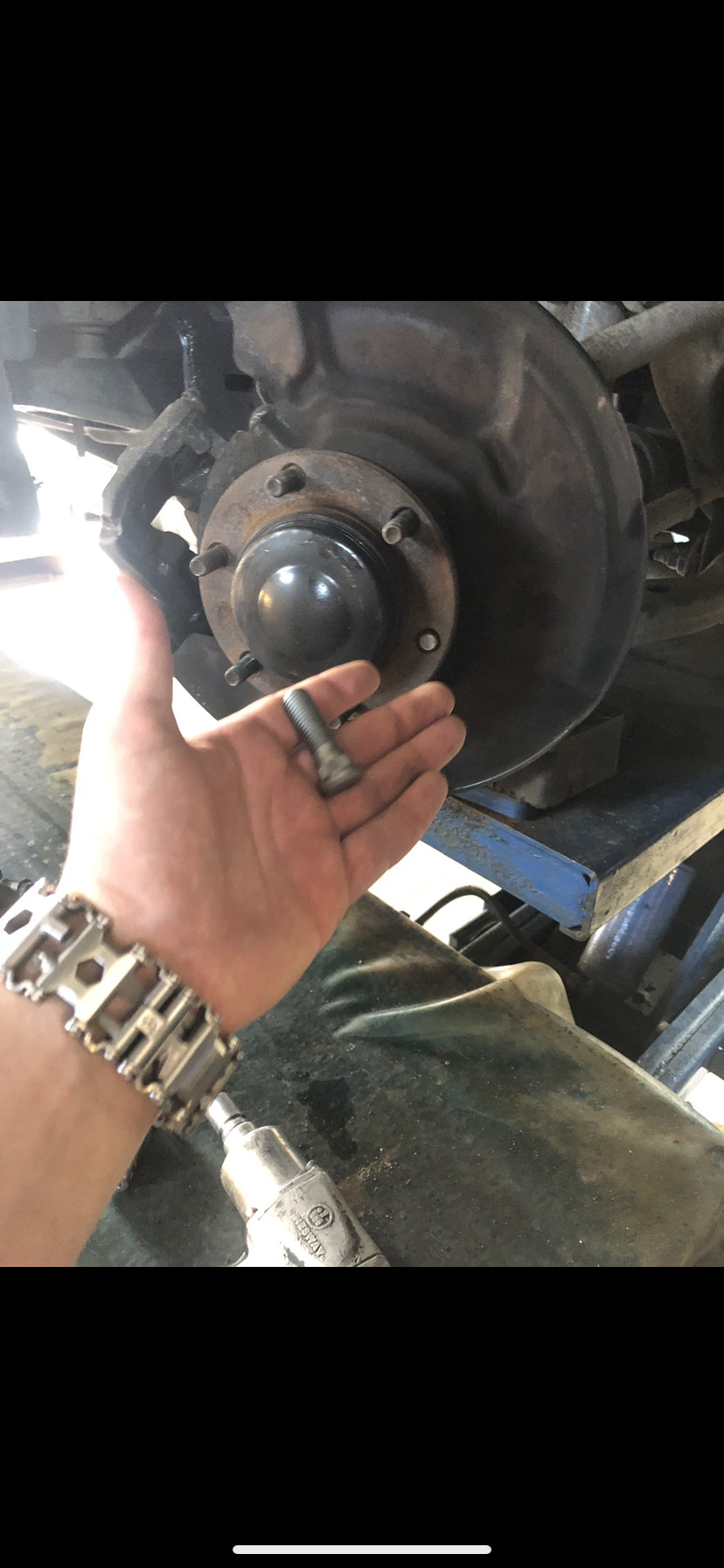 Плюс ко всему затягивал колесо каким-то аномально серьёзным балонником у товарища на сто, помимо прочего я взял трубу и сломал к черту шпильку😂😂😂