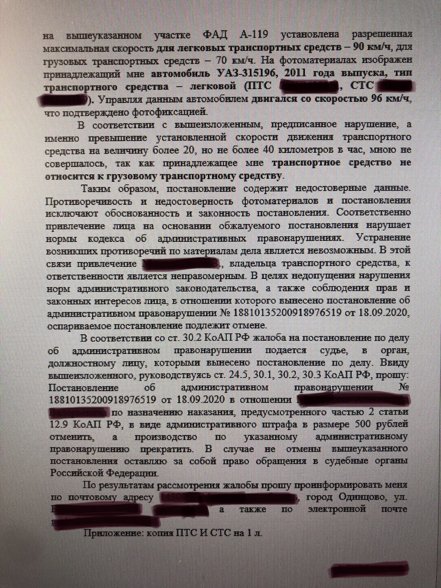 Это понятно! Но по такому фото штраф за движение с прицепом очень странно выглядит. Причем других фото нет. Поэтому и принято решение обжаловать то, что указано на фото, а именно скорость легкового/грузового ТС