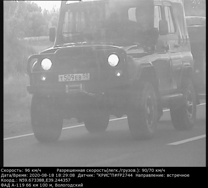 Изучив фото немного озадачился… скорость 96 км/ч, при разрешенной для легковых 90 км/ч, а для грузовых 70 км/ч. Таким образом УАЗ приравняли к грузовому транспортному средству, а с какого… бодуна, УАЗ вдруг стал грузовым транспортным средством? Про новое ОТТС с конца 2018 года слышал, но там и индекс модели другой. У нас же в ПТС и СТС черным по белому написано, что тип транспортного средства — легковой. Возможно, камера разглядела прицеп, но это сомнительно.