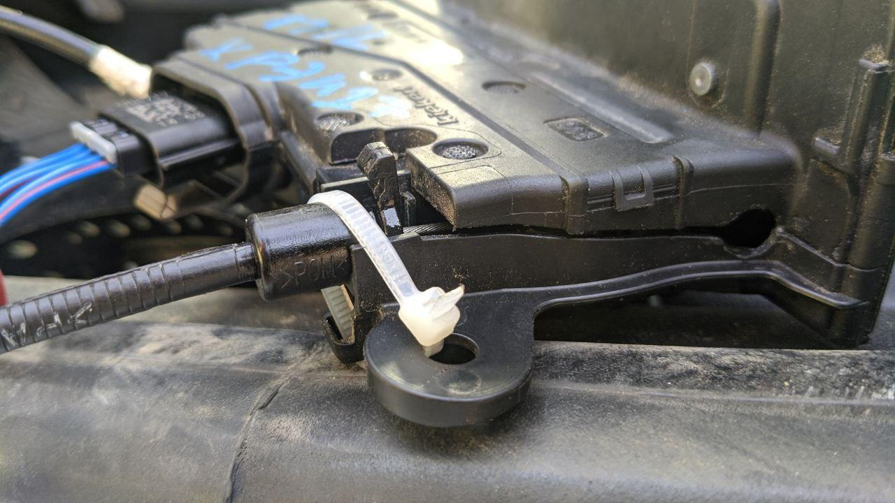 Далее перекидываем все троса открытия дверей. Для надежности закрепил стяжками, на замке XRAY защелки сделаны по-другому немного.
