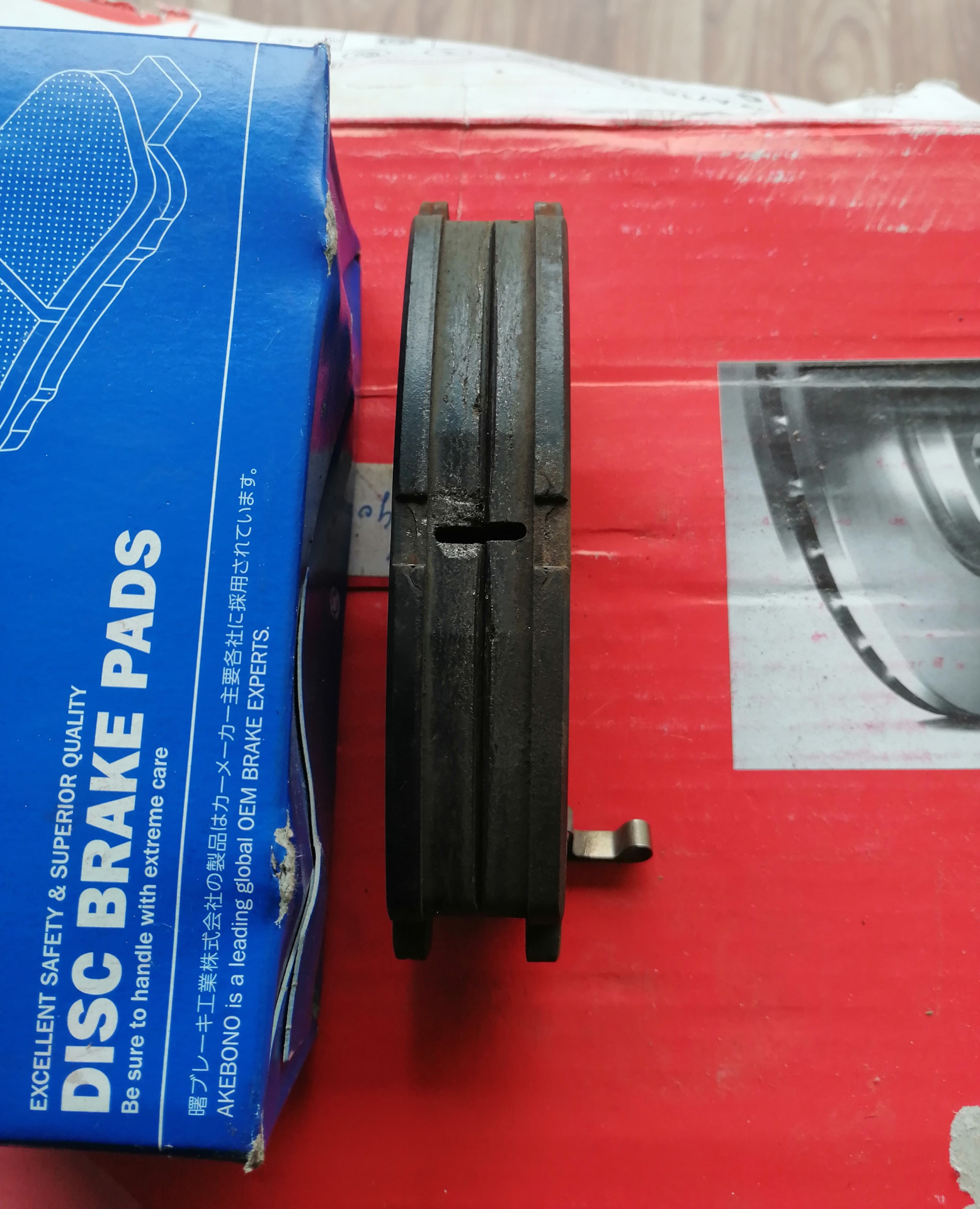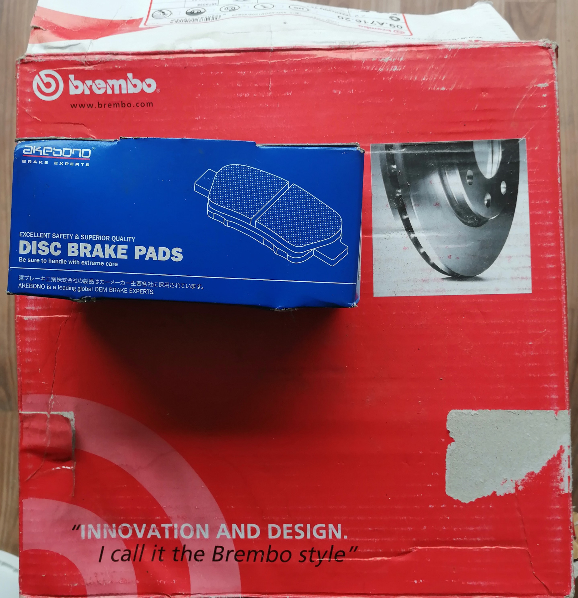 Диски как всегда беру Брембо (4200 руб), колодки попробовал Акебоно и мне понравились, поэтому тоже такие и взял (1500 руб). Диски заказывал своему товарищу крашеные, но кто-то, что-то напутал и пришли обычные))))), на да фиг с ними, не критично. Диски и колодки брал еще в октябре прошлого года. Кто хочет ставить диски Брембо рекомендую 09.A716.21, (21 на конце)), это диски крашеные будут. При установке колодок вычистил как кот тестикулы))) прижимные пластины проволочной насадкой на дрель.