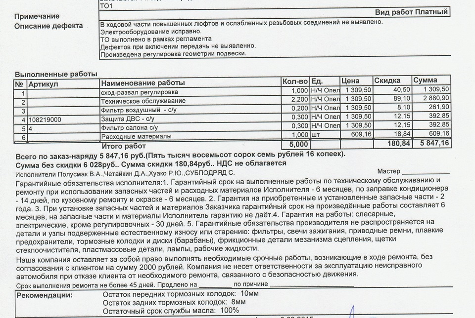 отдали машину после 16-00… машина помыта, в том числе под капотом… отрегулировали схождение, других замечаний по результатам ТО не было… в багажнике лежали старые фильтры (воздушный и салонный)… масла не было… пошел обратно, вынесли из ремзоны…