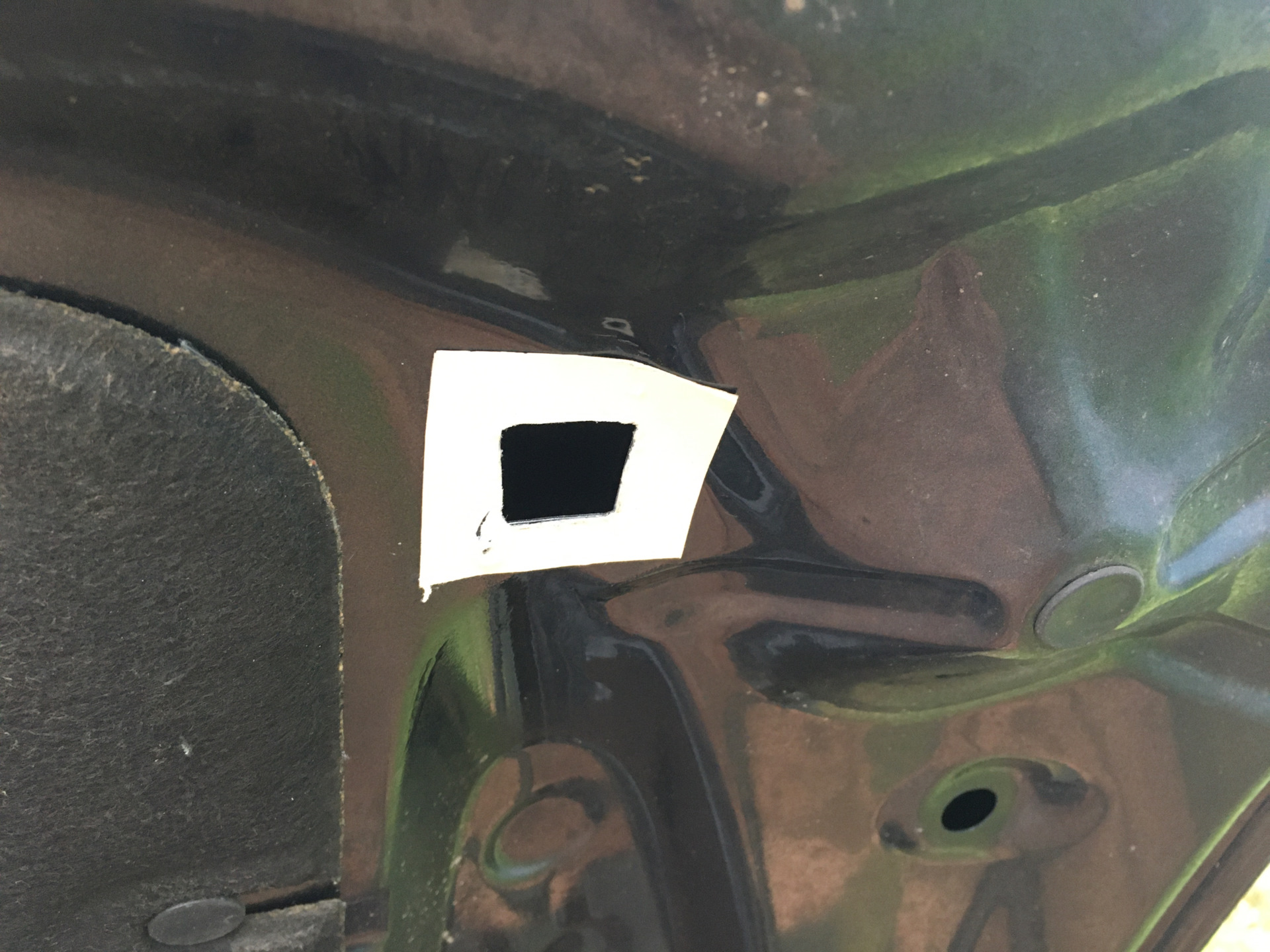 Сделал шаблон, наклеил на капот и выпилил отверстие.