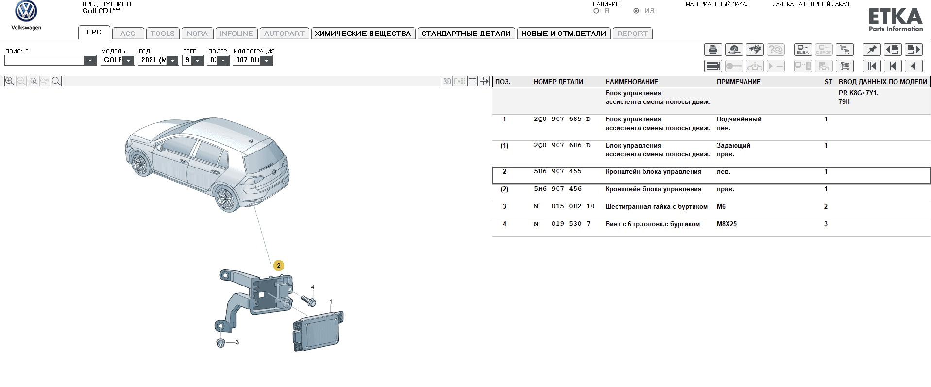 Для Гольф 7 в ETKA только 5Q радары