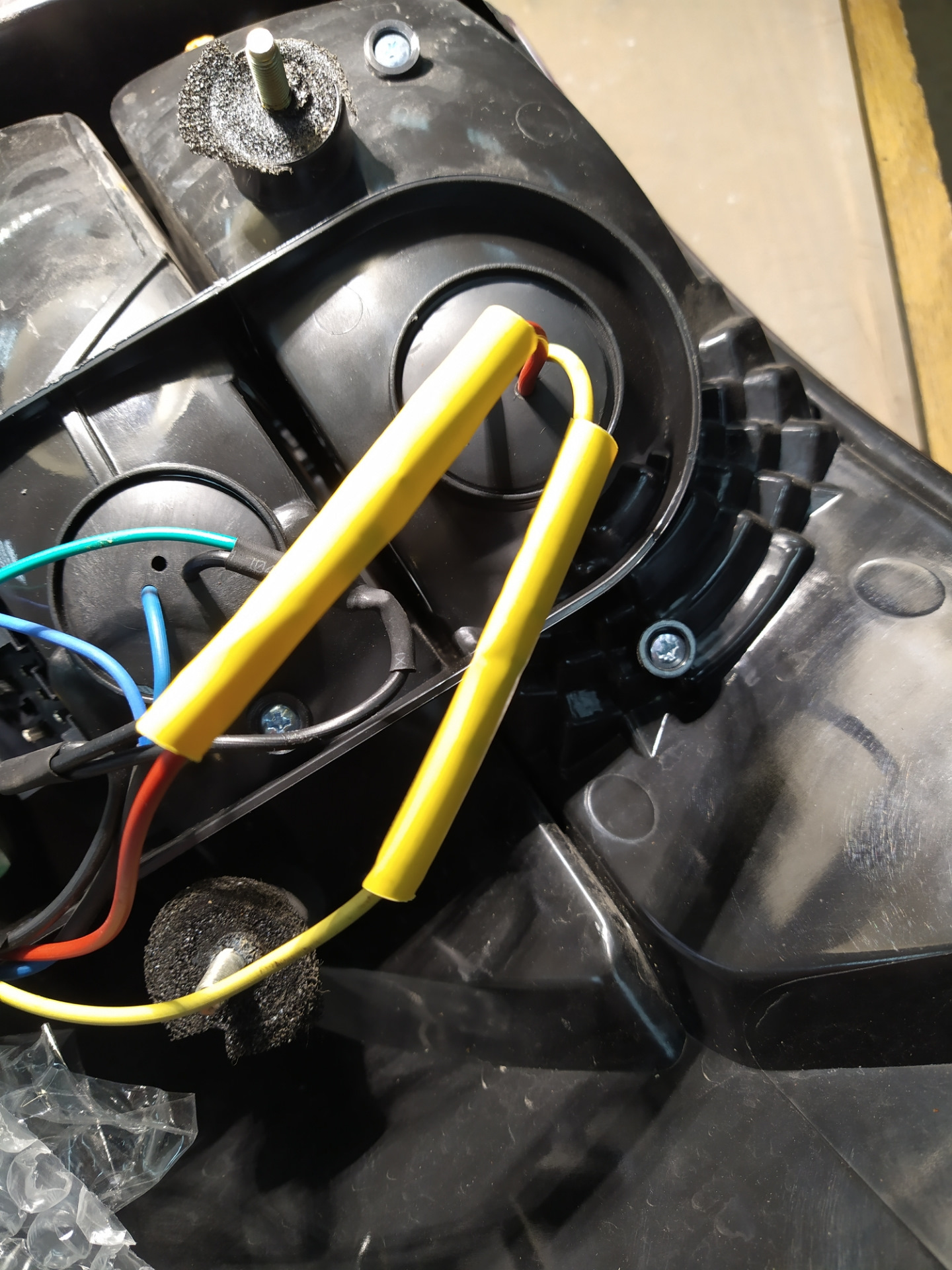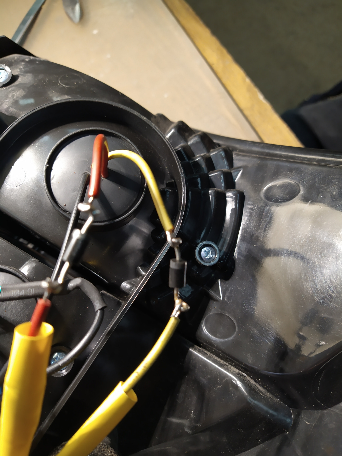 Диоды были впаены в плюсовые провода ГО и СС на обоих фонарях и заизолированы термоусадочной трубкой.