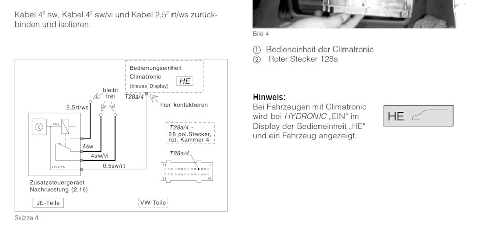 Пофиг, климат или обычная печка, на Т4 с завода, сначала греется салон(экология, мать её). Но на блоке климата есть контакт, для включения разморозки стёкол, при включённом предпусковом.