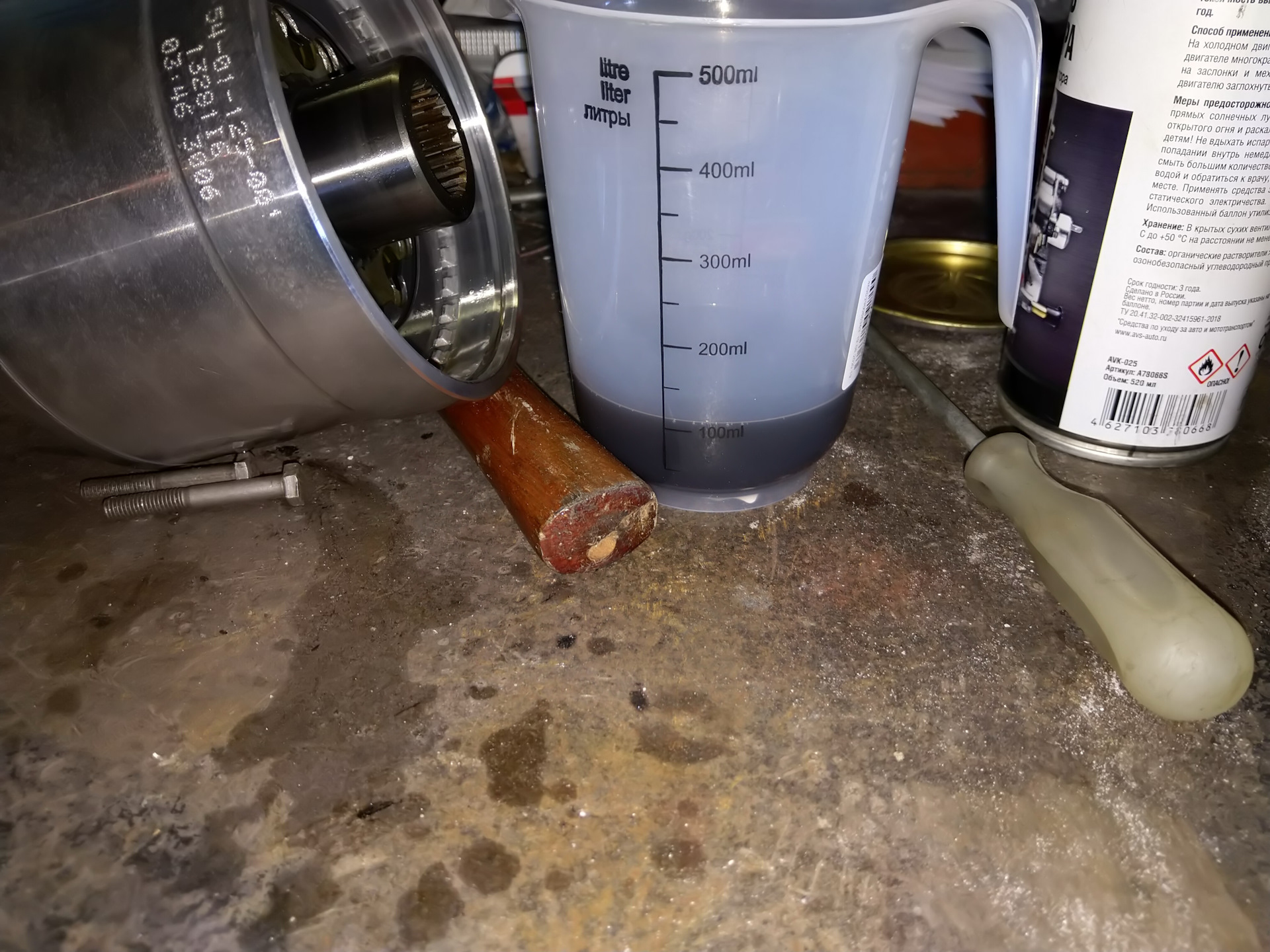 На 3 раза промыл керосином внутреннюю часть гранаты с фрикционами, пока не слился светлый керосин. Затем отмерил 150 мл. масла и залил его в муфту.