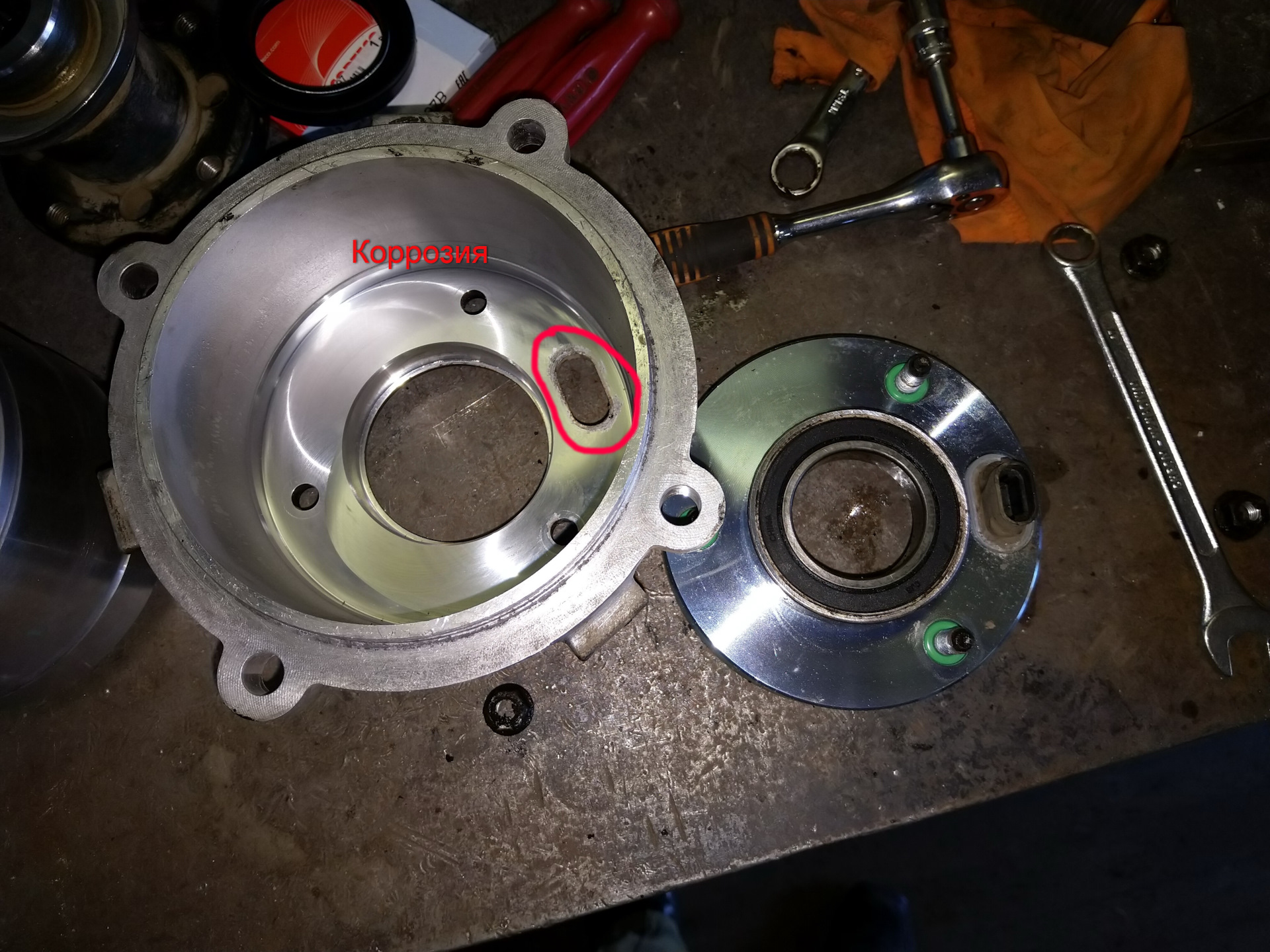 Открутив гайку на 30 я снял задний фланец кардана и обнаружил коррозию на металле фланца, которая сильно сточила сальник.