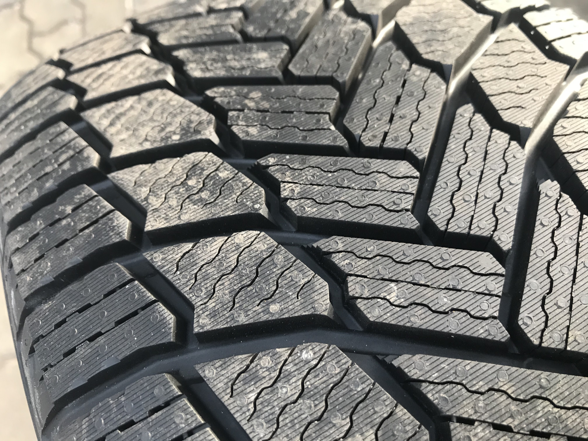 Красивый протектор шин. Я и не знал, что новые нешипованые мишки вышли. Ездил на первой и второй версии Икс Айс — очень понравились.