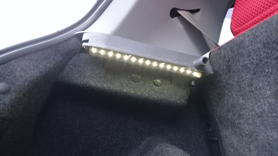 Когда только купил машину, открыл багажник, и… На мое удивление, никакой подсветки в багажнике на было. Точнее плафон то есть, и как оказалось позже он рабочий. Но он не светится посмотрел визуально, концевика не заметил, потыкал пальцами около плафона — кнопочек нет.