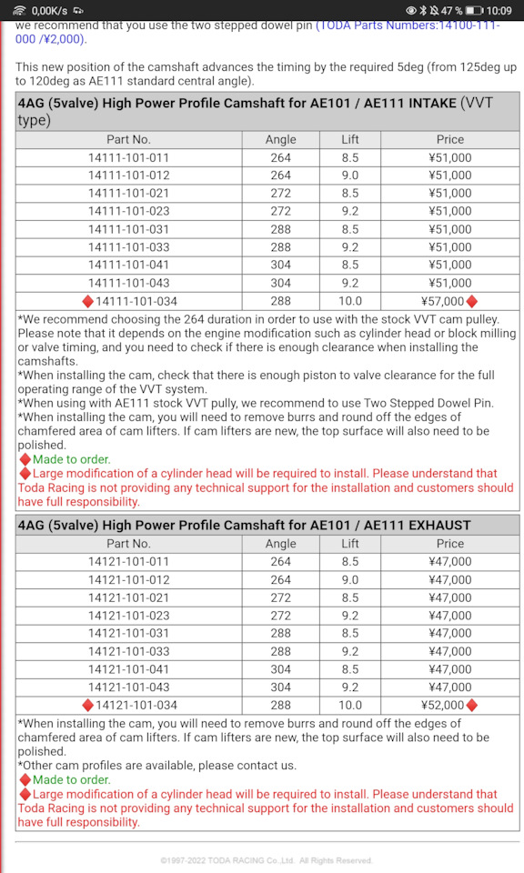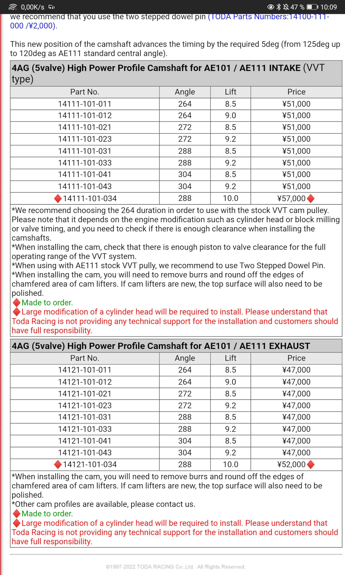 Всем привет вот и приобрёл валы Toda Racing 264 8.5 фаза. к ним сразу же купил регулировочные шайбы для клапанов… Да хотел конечно же 272, но не срослось. буду ставить эти валы. эффект конечно же не как на 272, но лучше чем сток 256 валы с подъёмом 7.9 …