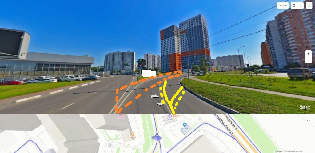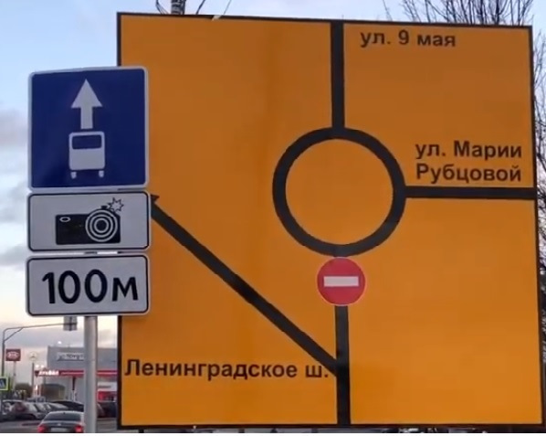 Я на прошлой неделе ехал по этой же дороге! И встал в ступор когда увидел кучу оранжевой разметки новой новые знаки и знак запрещающий ехать на право на круг! С перед кругом была дорога нарисованная которая уходила на ленинградку! И машина там стояла с камерой безбожно фоткала всех подряд! Но я по всем подсказывающим знакам и разметкам выехал на ленинградку мимо автосалона