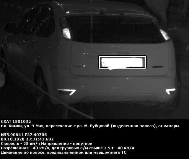 Сегодня то же прилетело. Вот интересная вещь: на сайте ГИБДД на пересечении 9 мая и Рубцовой официально передвижная точка может сечь только скоростной режим! Про выделенку ни слова! гибдд.рф/milestones/2877402/ Да и выделенка там обозначена не корректно, ибо временная разметка. В тёмное время суток ну совсем не по ГОСТу раз и кирпичи должны стоять на каждом столбу на высоте 2м до круга, а не под облаками в темноте на высоте 10м. два. cdn.photosight.ru/img/d/1f9/6220053_xlarge.jpg На фото видеофиксации факт нарушения не зафиксирован, потому, что точка там ориентирована совсем не для выделенки, а для фиксации скорости. Можно обжаловать ИМХО, но заплатить придётся. :(
