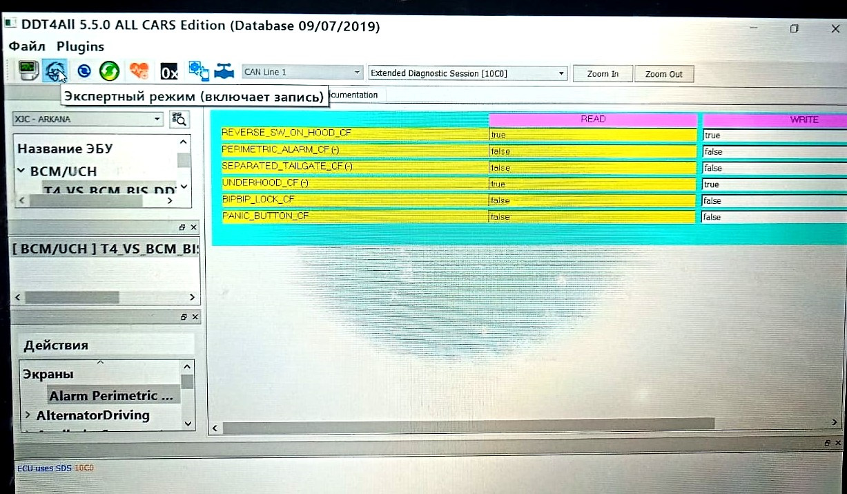 Только, когда я изменил параметр separated_tailgate_cf, перестала открываться дверь багажника! Пришлось этот параметр вернуть в исходное состояние. И все стало нормально. Сигнализация работает.