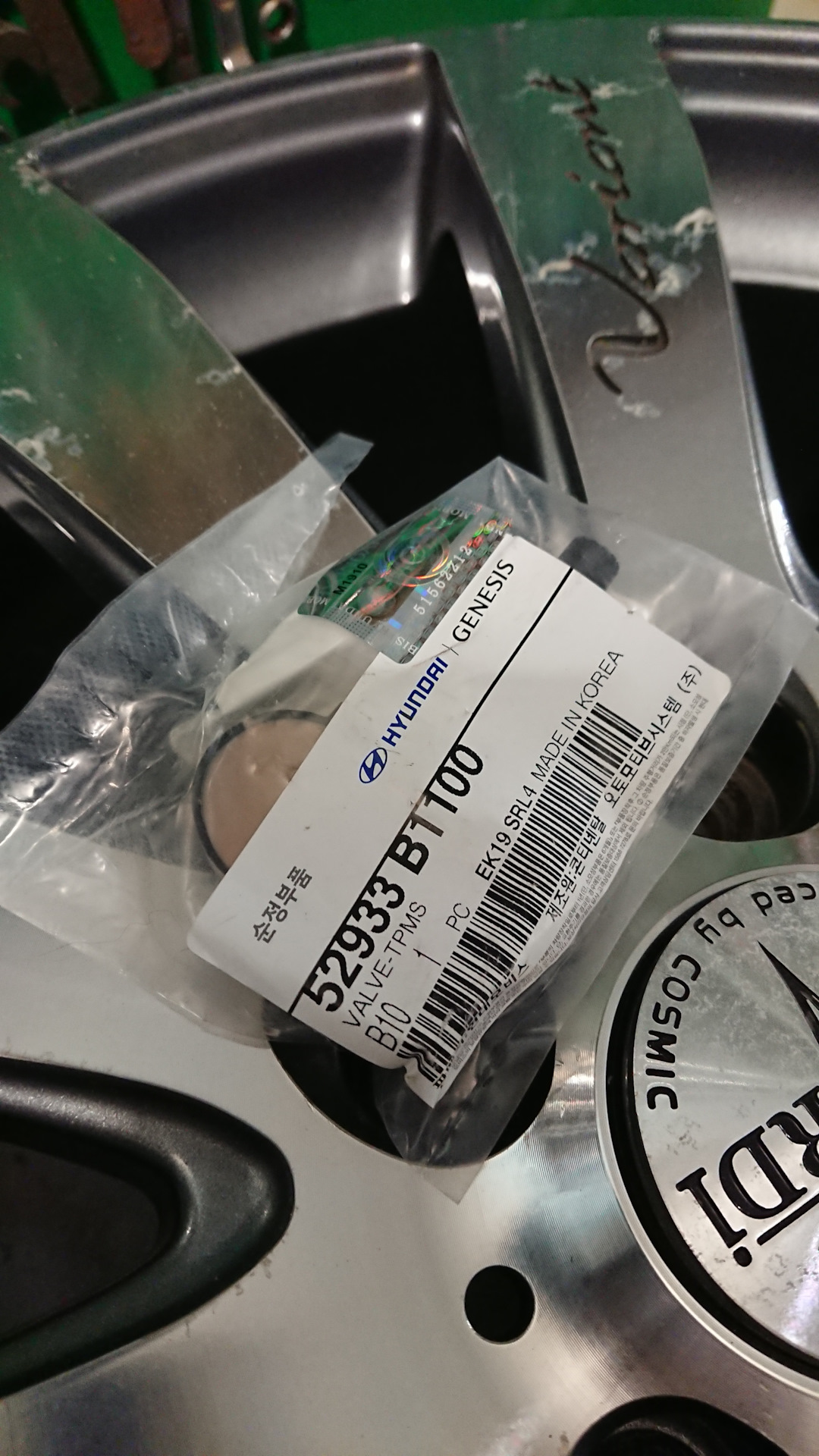 Следующим этапом заказываем штатные датчики давления, чтоб все работало в штатном режиме. Тут помог интернет магазин exist.ru. Вот номер их Hyundai/Kia 52933-B1100, цена на тот момент 1900*4/7660р с доставкой в П-К. Экспериментировать с датчиками с Али я не стал. Единственное что фирменные датчики идут почему то без фиксирующей гайки. Гайку пришлось заказывать там же, вот ее номер Hyundai/Kia 52934-A5000, цена 205*4/820р.