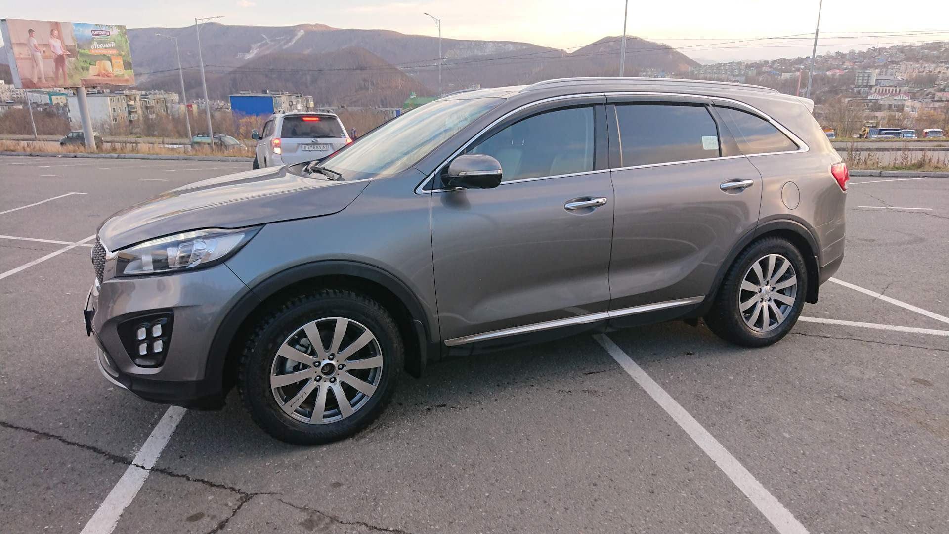 По умолчанию, в моей комплектации на машине стоят 19 диски и резина 55 профиля, но на зиму я решил взять 18 радиус, чтобы профиль колеса был повыше, для большего комфорта на зимней дороге. Сами шины у меня остались с предыдущей машины и были практически новыми, откатались один сезон Nokian Hakkapeliitta 8 SUV в размере 235/60/18.
