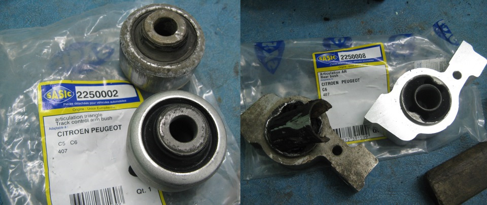 Центральный действительно наверное вечный, а вот задний был с приличными надрывами, про нижний вертикального рычага вообще не говорю — он был вхлам разбит. Кстати у пежо классная политика, сайлентблоки которые чаще всего выходят из строя идут вместе с рычагами, типо покупайте рычаг в сборе