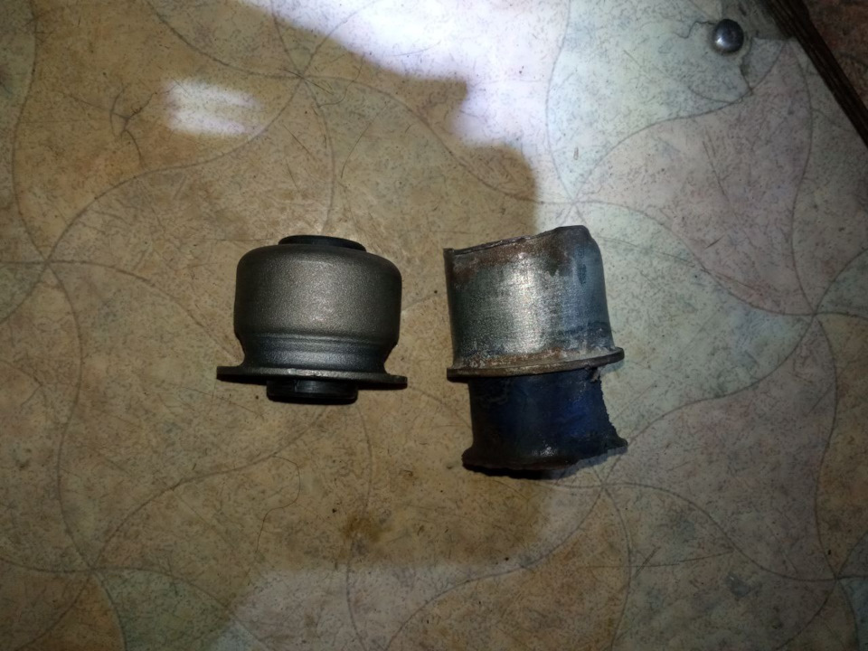 Сайлентблок был сильно изношен, скажем так средняя часть вышла сама :) Вообще необходимо выдавливать только за внешнюю обойму для этого лучше иметь хорошие съёмники