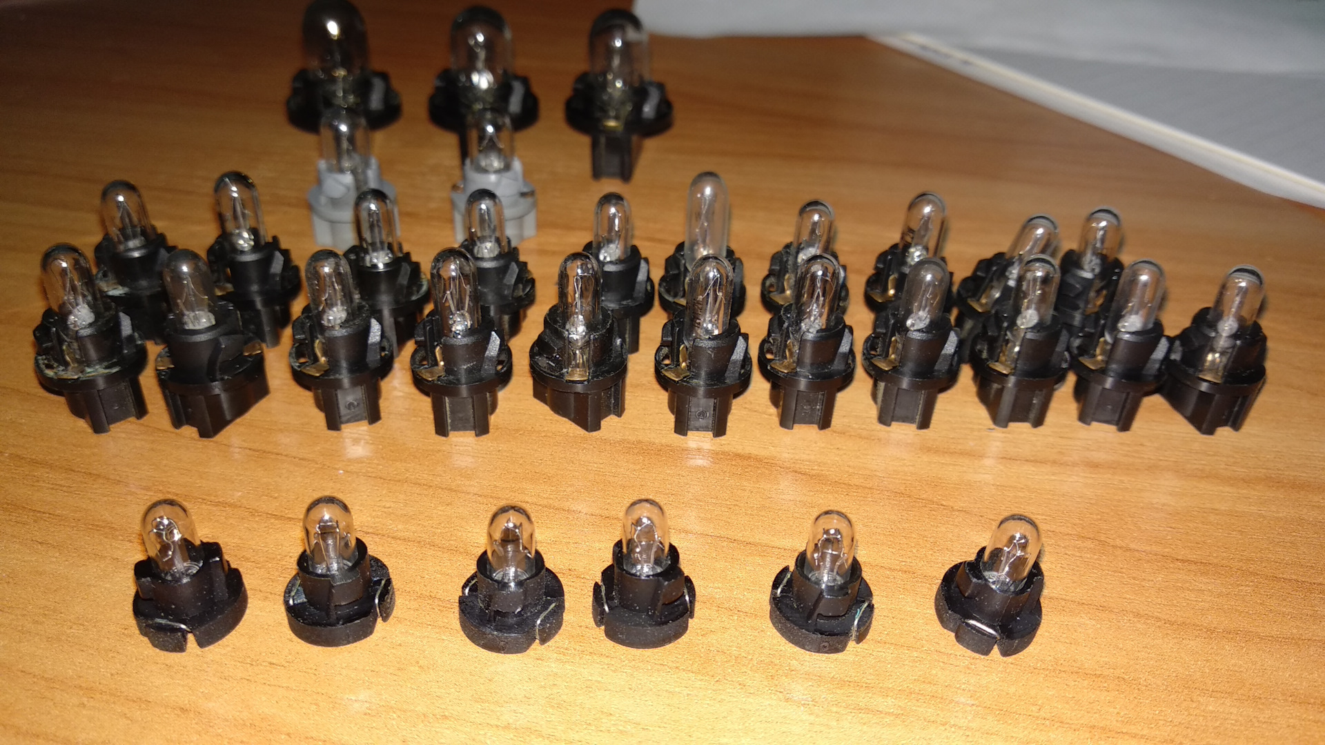 Полез я искать причину неработающего заднего дворника при нажатии на специальную кнопку (www.drive2.ru/l/573854086185615862/) и нашел-таки. В конце той статьи дописал и добавил фото. Кому интересно, ссылку добавил выше. Так вот, и решил я проверить лампочки на приборной панели, а затем и в кнопках. Все это дело достал. Понимаю, что некоторые не используются, потому что таких функций в моем авто уже давно нет, но может кому и пригодится.
