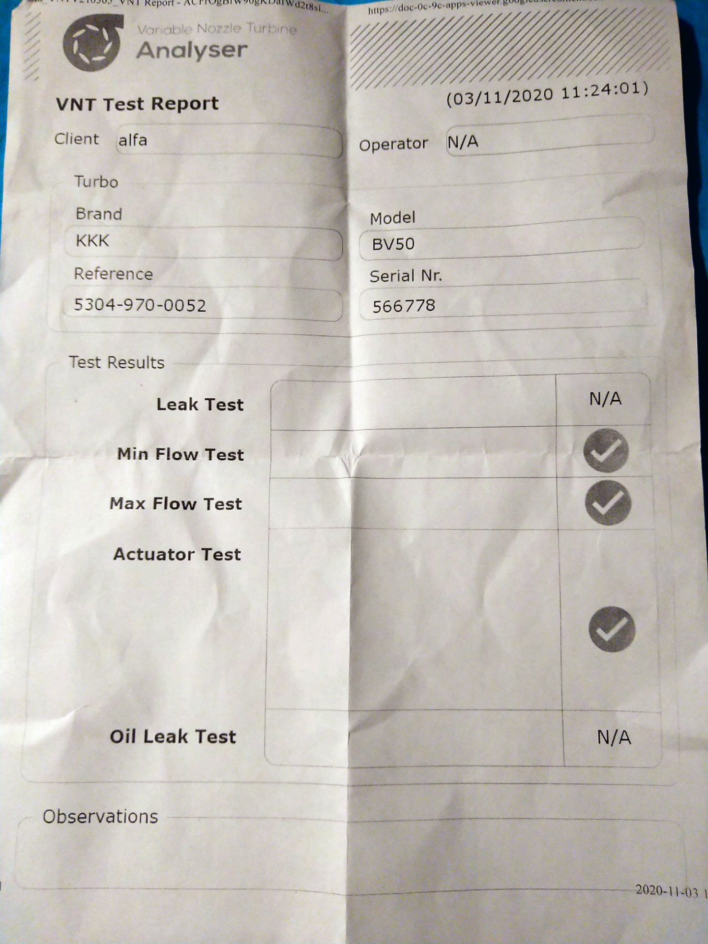 Продолжаю мучаться с передувом . Так как забрал с сервиса машину где уже всё пересмотрели, разобрали тысячу раз и собрали, но результата нет . Все разводят руками . И вот что меня натолкнуло на мысль, когда я увидел листик с теста что с турбиной всё ок . В моих постах ранее когда я спрашивал про отличие 147kw и 154kw, писали что там турбины отличаются . Так вот у меня стоит KKK bv50 5304-970-0052, а на сколько я понимаю должен стоять Garrett, ведь у меня 154kw ? Или я что то недопонимаю, уже не знаю даже что и думать . Короче объясните человеку как должно быть . Заранее спасибо