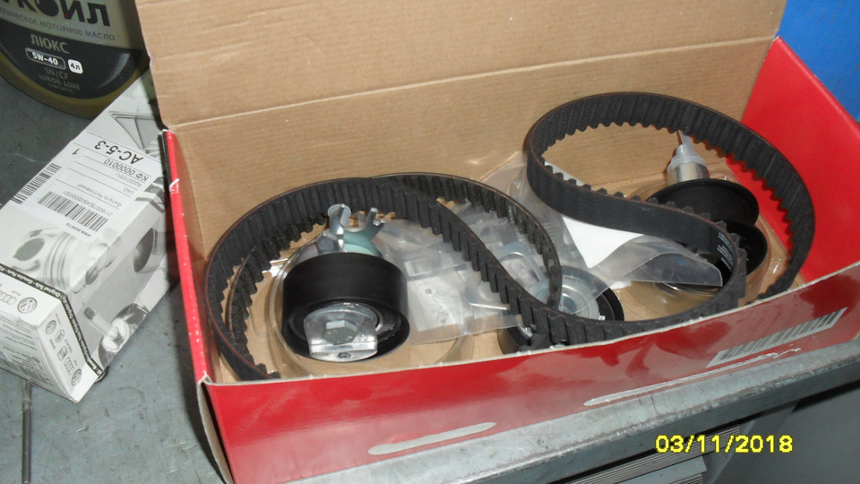 Я про эти тонкости не знал, поэтому просто купил набор из ремней и роликов, тот, что на фото в красной коробке. Обошёлся он мне где-то чуть больше 5000…