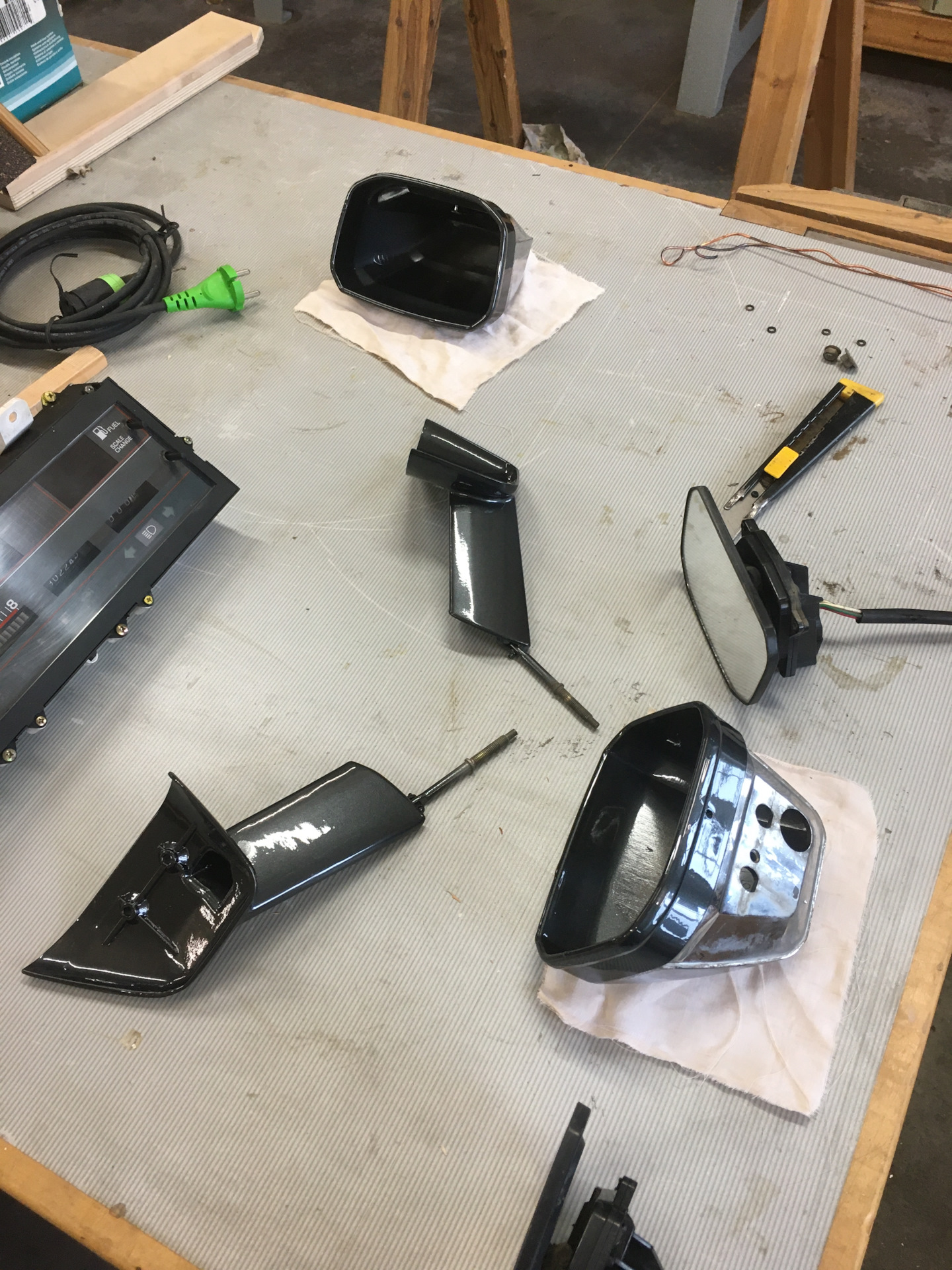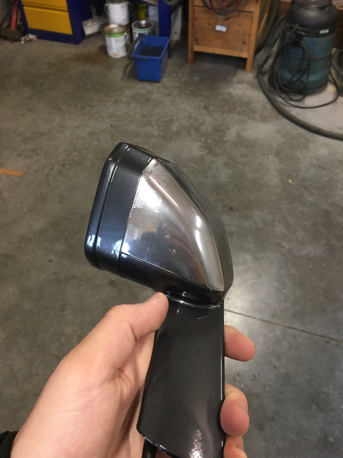Всё это пришлось проводить дабы убрать окислившуюся часть металла — она здорово мешала, да и в целом большая часть ножки была окислена. С левым зеркалом несколько проще — просто заматовал имеющуюся краску 240 наждачкой, полностью снимать смысла не вижу.