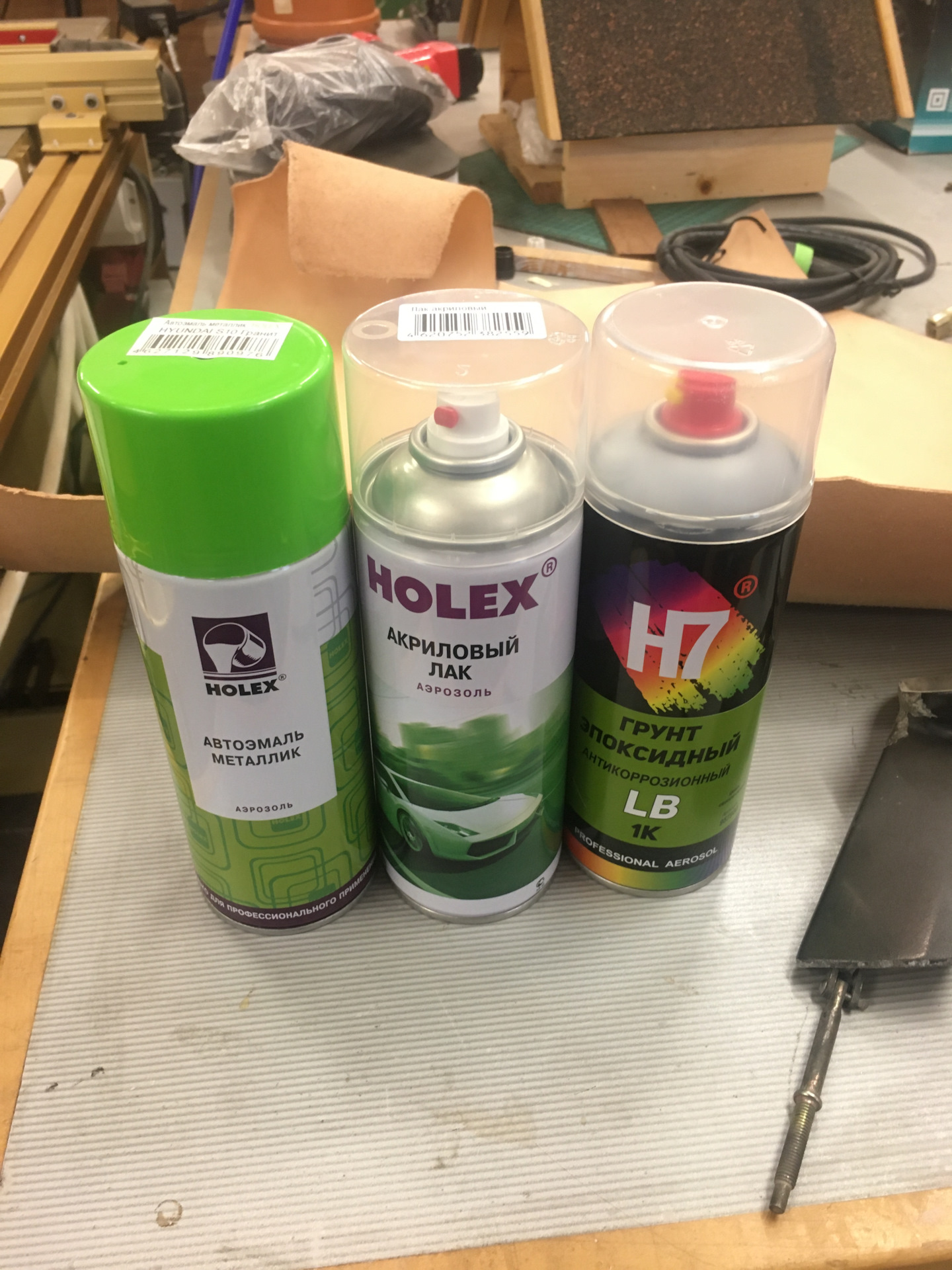 Ножка правого зеркала достаточно сильно окислилась и облезла, красить решено с полной подготовкой поверхности. В молярском магазине закупаем следующие позиции: грунт эпоксидный, эмаль под какой-то хендай и сверху лак для красоты всего исполнения