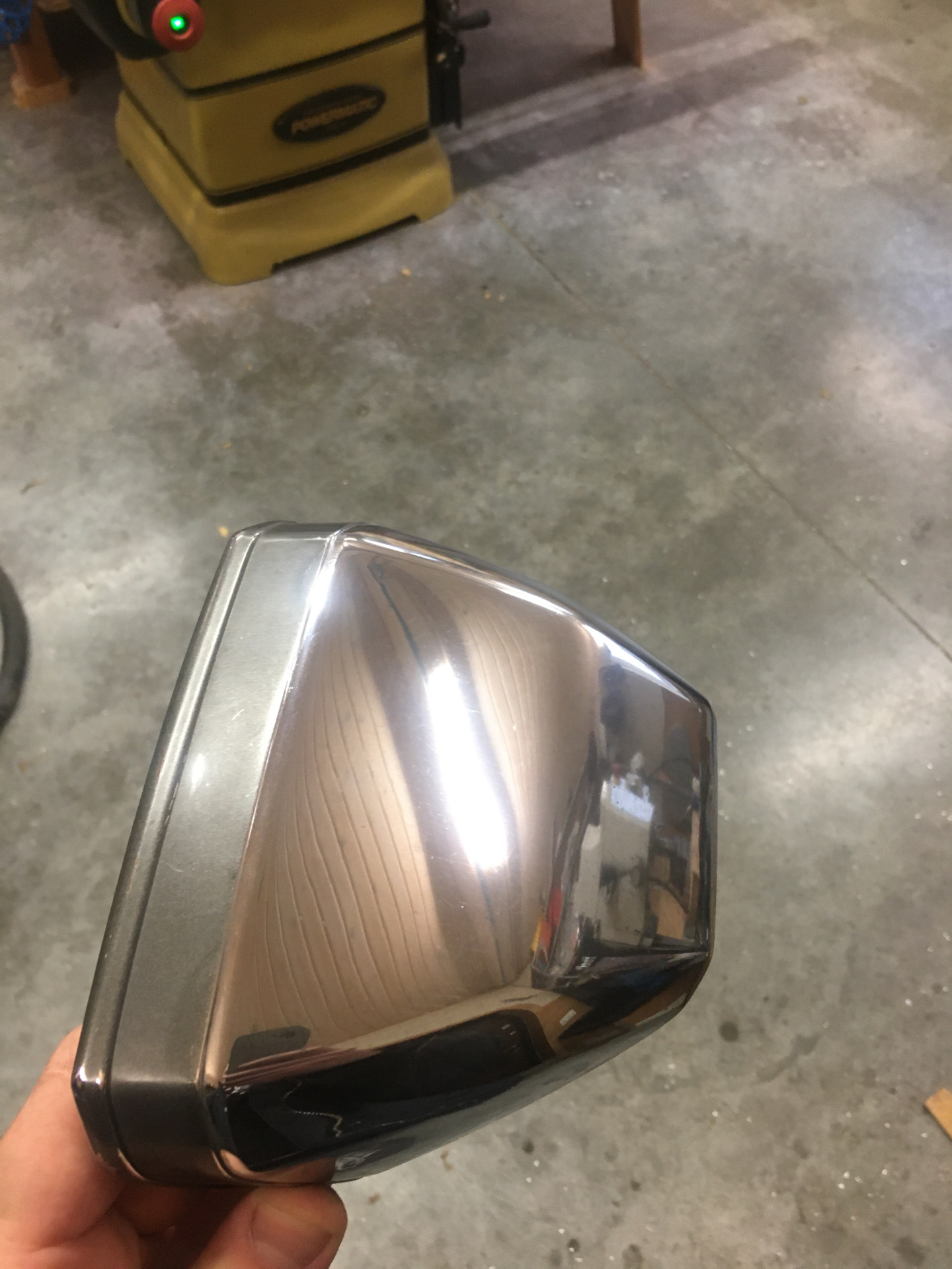 Сразу же самое приятное — полировка хрома. Правое зеркало стало практически новым. А левое ожидаемо реанимировать не удалось — слишком сильно отпесочен хром, но всё же лучше, чем то, что было.