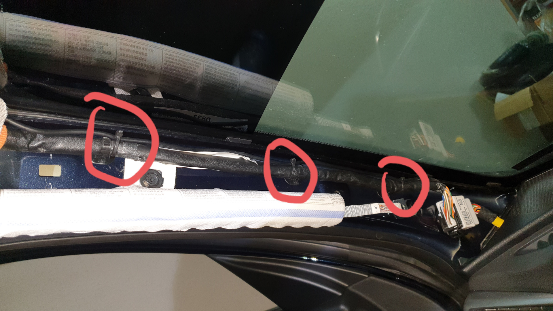 Подключение задней камеры аналогично, все очень просто, оттягиваем уплотнительную резинку и проводим провод до камеры.