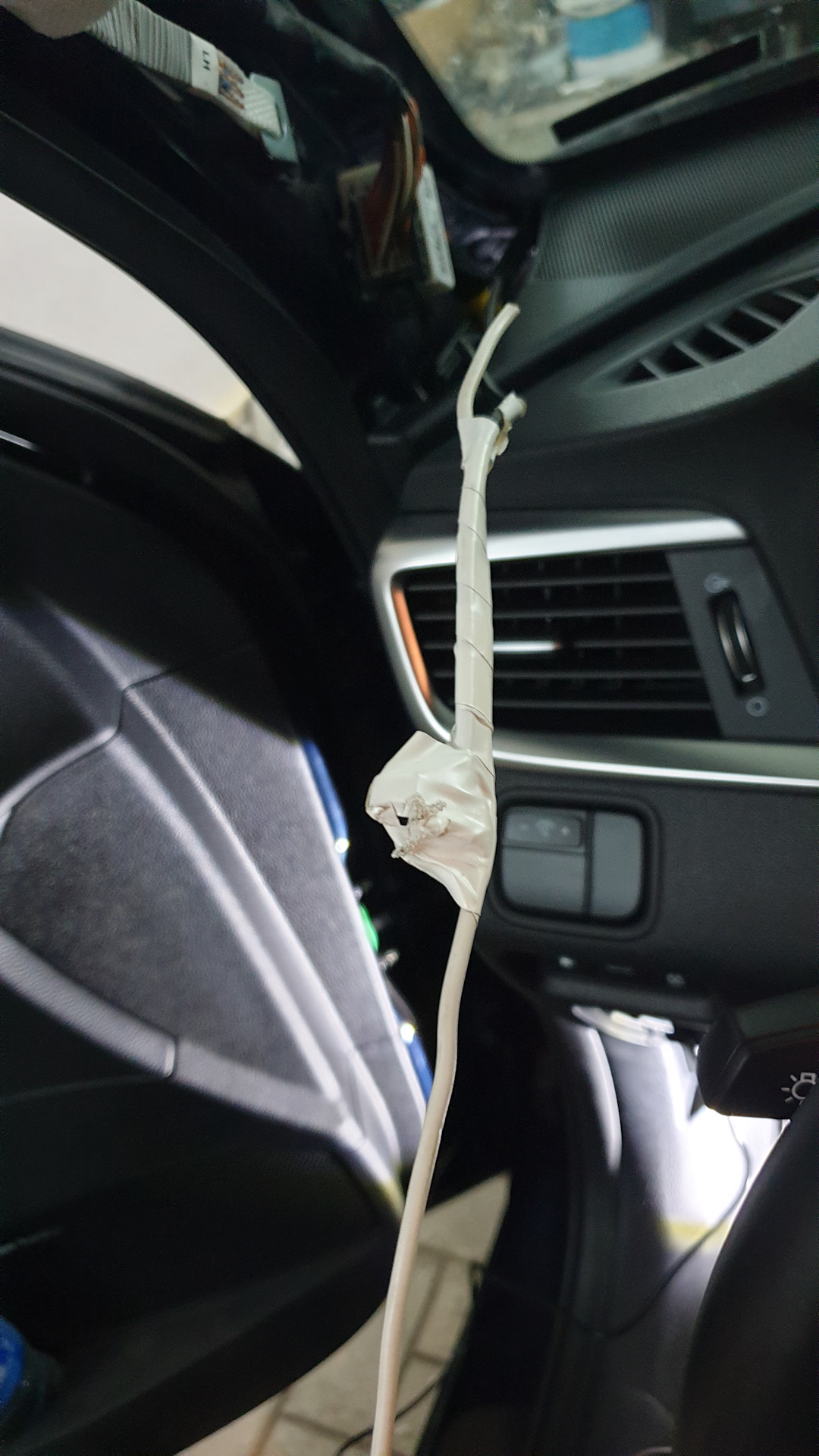 Провод обмотал изолентой с кабелем питания регистратора, протащил все