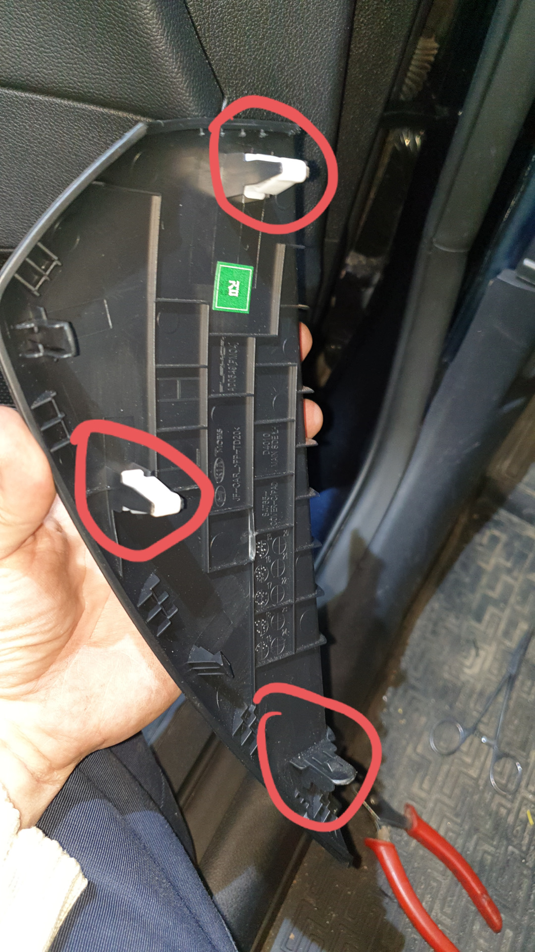 Блок предохранителей, боковая левая панель открывается просто, оттянул уплотнил, снизу поддел и снял накладку. Накладка крепится так: