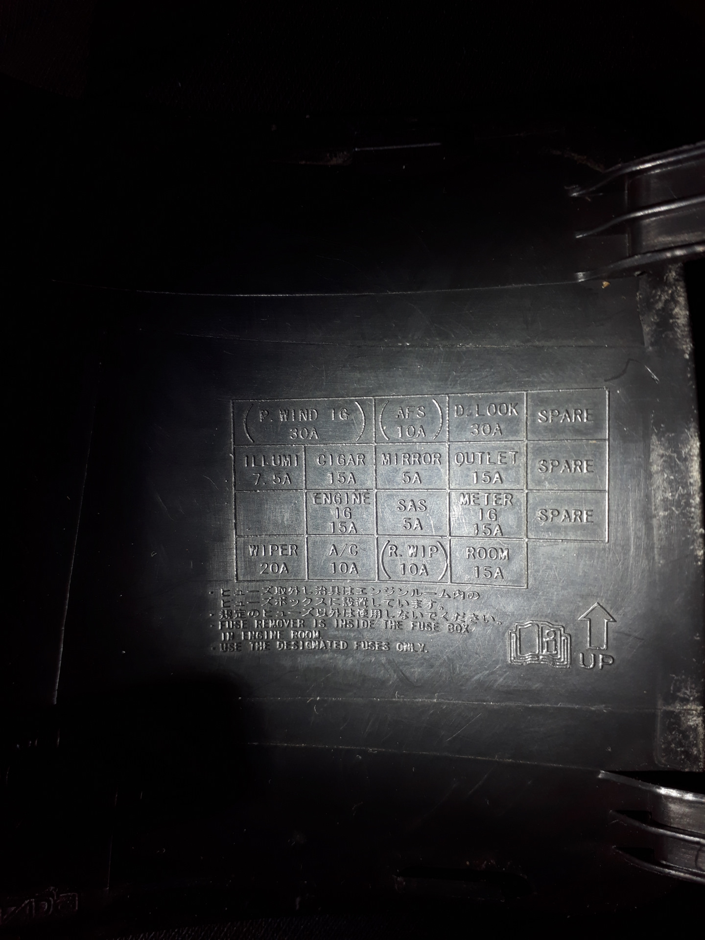 Уже не помню, на крышки предохранителей написано 2spare, 1spare 10a