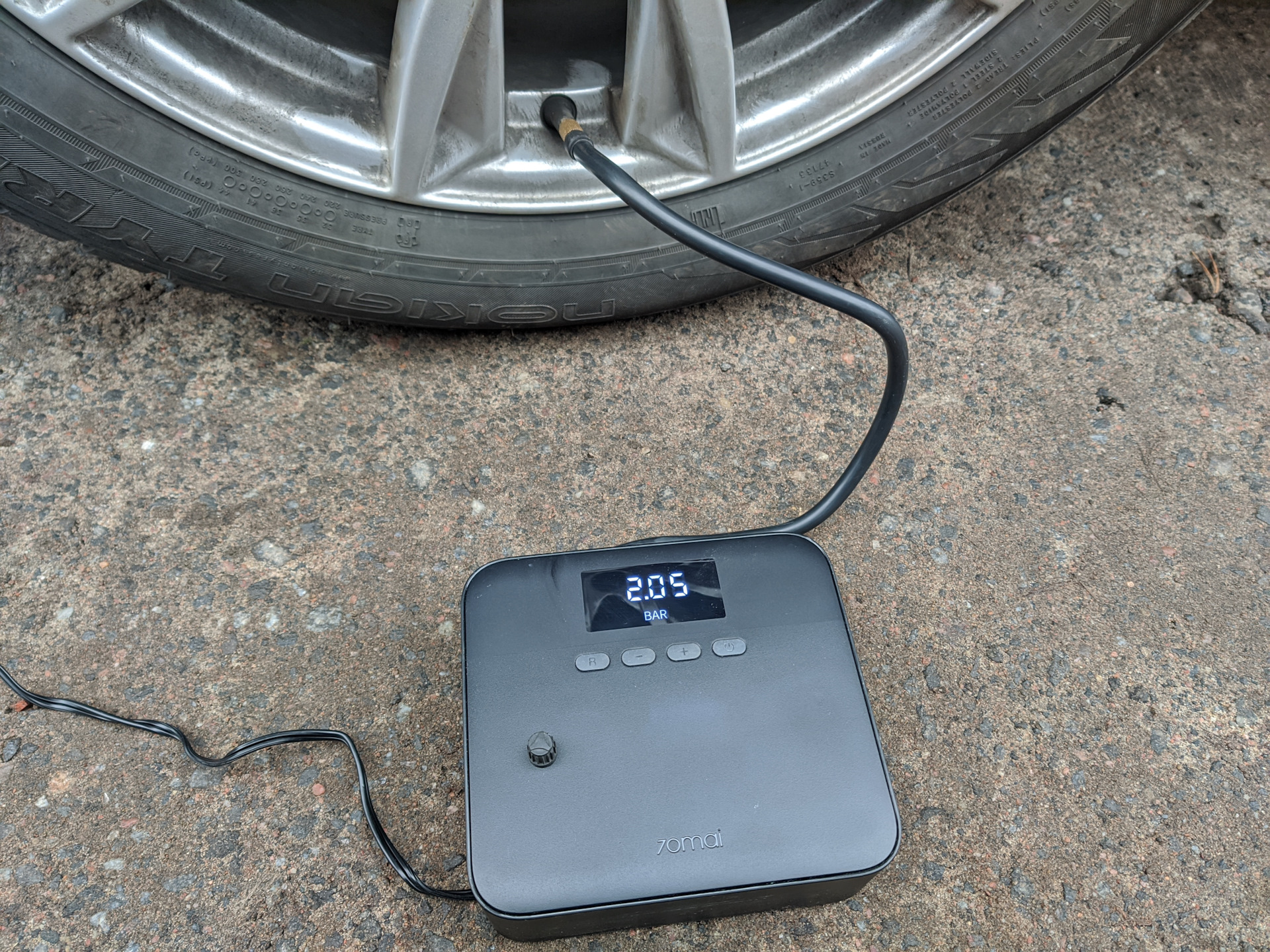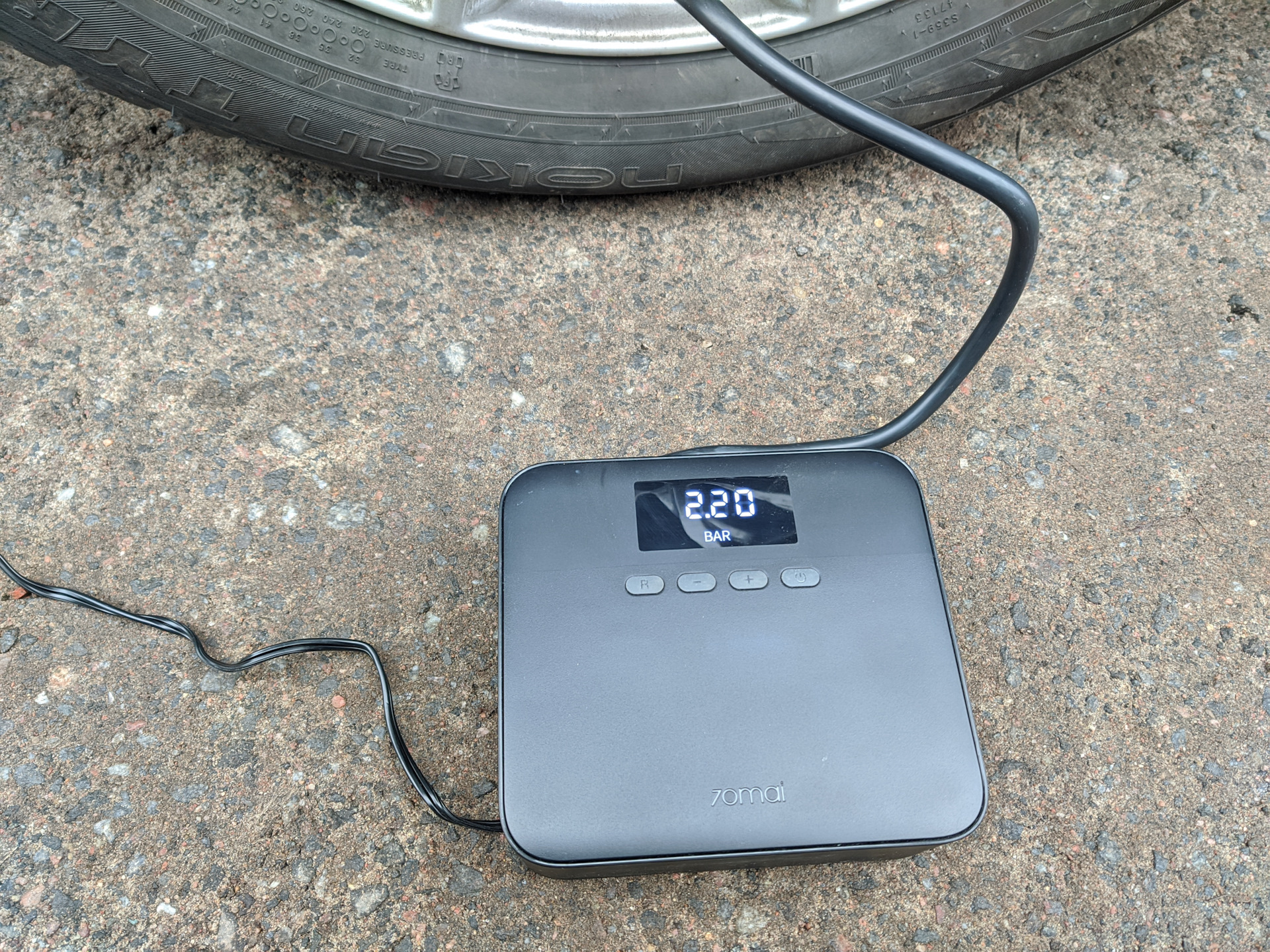 Заодно после переобувки решил-таки проверить чудо китайский компрессор 70mai Lite, купленный ещё в начале лета супруге на вторую машину. И скажу я вам, это ВЕСЧЬ! Удобен в использовании, реально качает очень быстро и до нужного вам давления, выставленного в настройках. То есть выставил 2,2 Бар, нажал справа кнопочку старт, он сам качает до 2,2 Бар и сам останавливается. Как раз для девочки)))