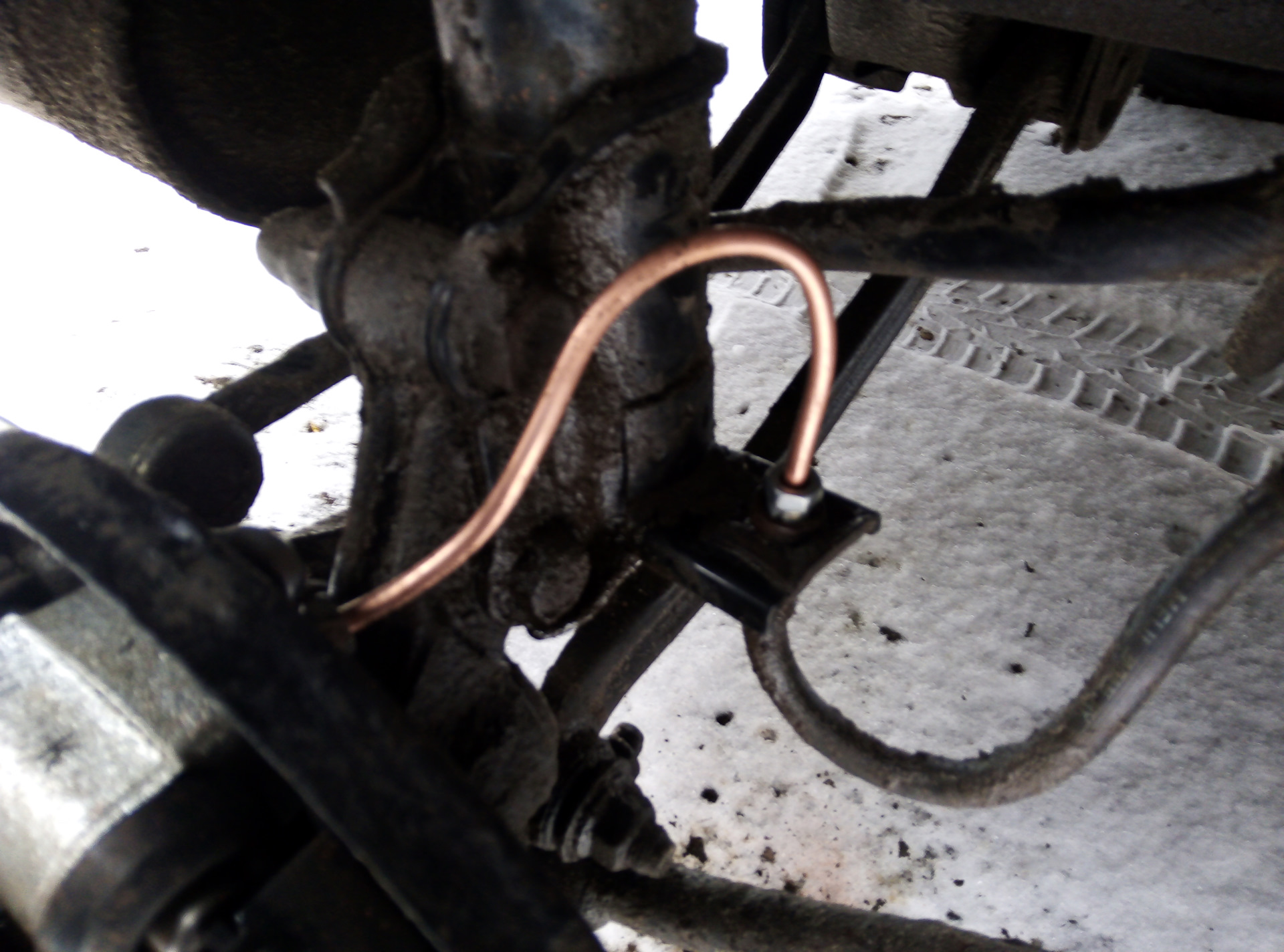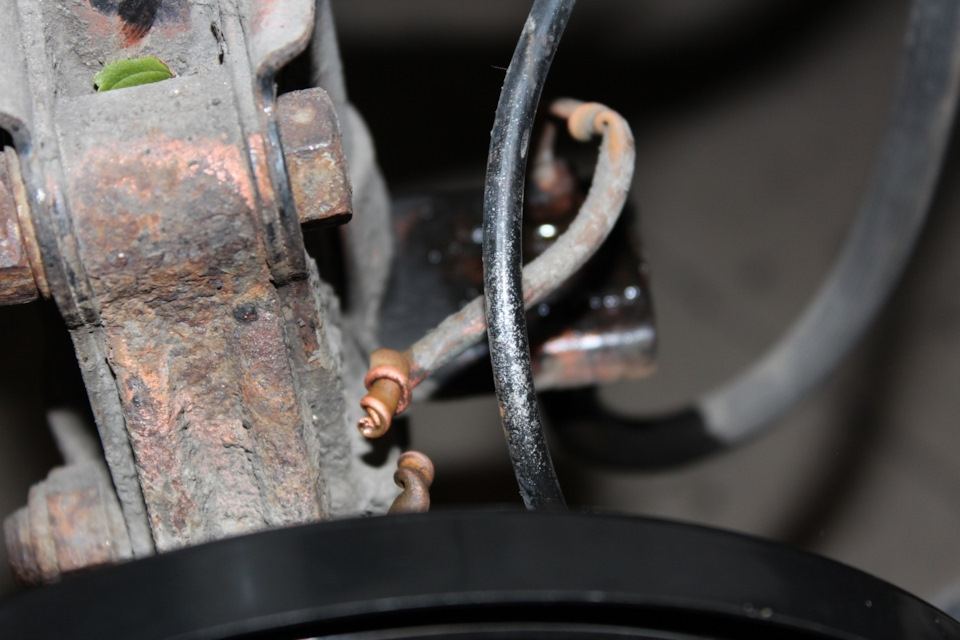 Когда штуцер прикипел к трубке и крутится только вместе с трубкой. Есть вариант, чтобы не менять трубки, при замене цилиндров. Нужно сорвать штуцер специальным ключом на цилиндре. Потом открутить цилиндр от тормозного щита. Потом скрутить цилиндр со штуцера трубки. Потом нагреть штуцер на конце трубки любой газовой горелкой (трубка будет плеваться горящими каплями тормозухи)). Потом нужно раскачать штуцер на трубке и он обязательно начнёт там крутиться.