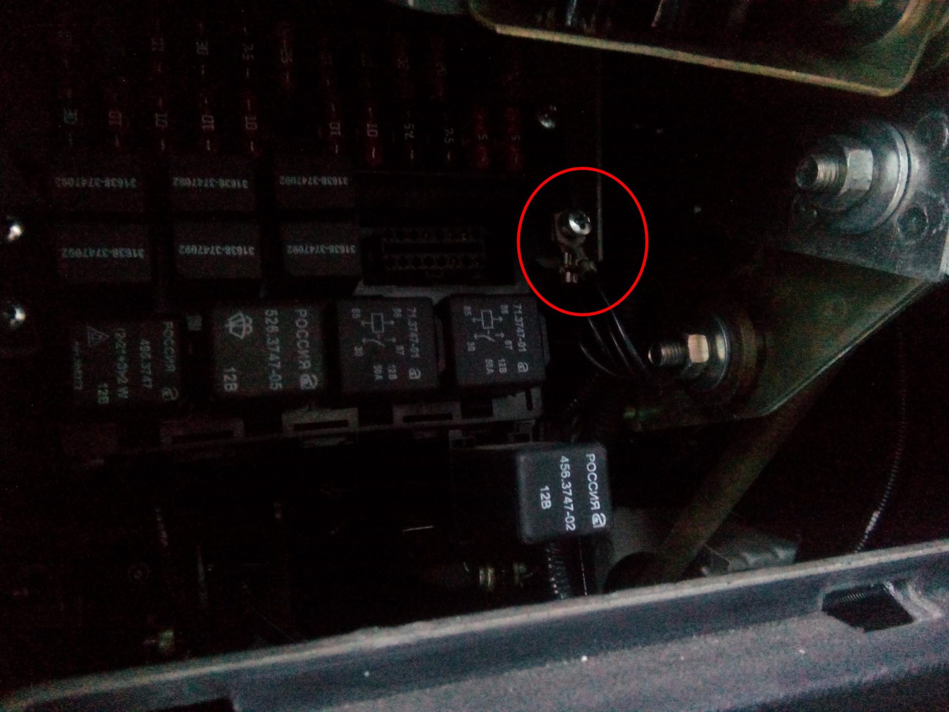 7) Провод массы панели предохранителей (и проверка + панели под капотом)