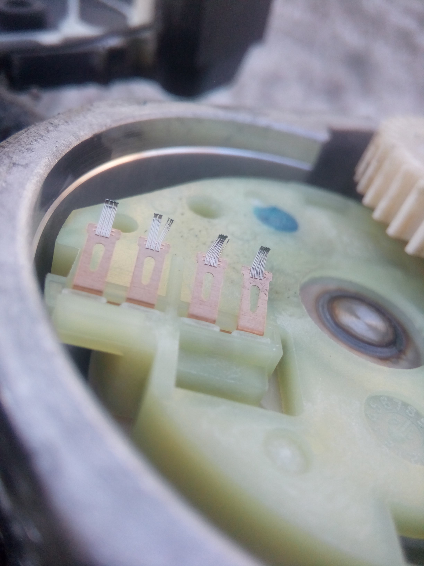 пружинные контакты погнуты (те что бегают по дорожкам и определяют положение заслонки) …