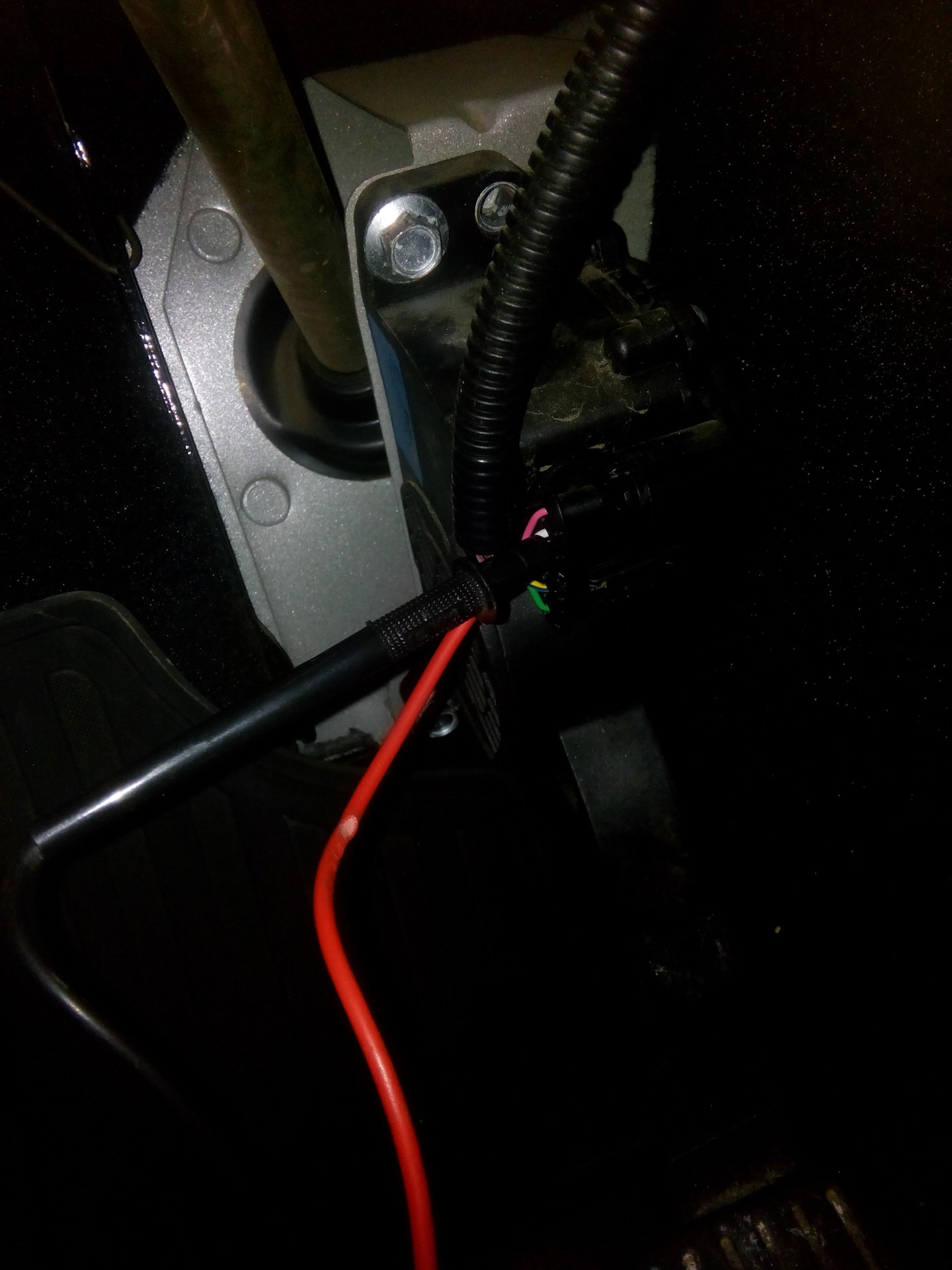 желтый разъем возле бочка омывающей жидкости. у меня один пин был выдавлен (или не доставлен до конца еще на заводе). доооолго искал, регулировал педаль газа, и даде купил ее новую. теперь лежит старая исправная педаль с пробегом 73 тысячи.