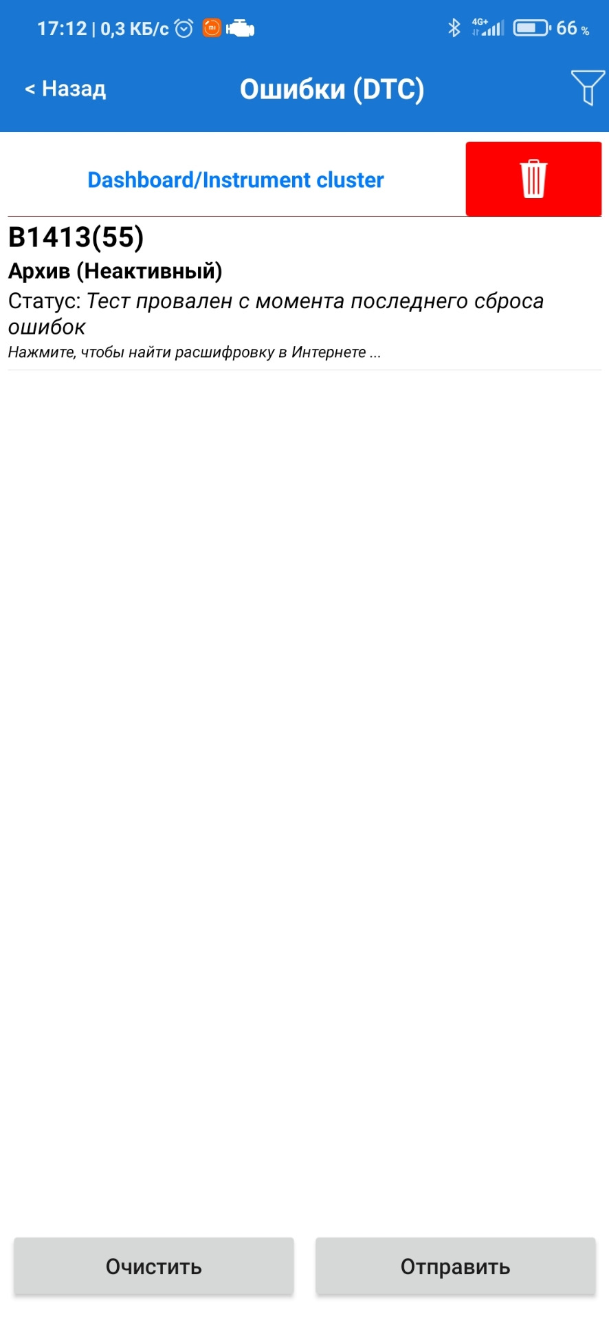 Привет. Появилась такая же фигня. B1413(55) Raw code: 941355 ECU: Dashboard/Instrument cluster[Архив (Неактивный)] Статус: Тест провален с момента последнего сброса ошибок Чего делать? Или забить?