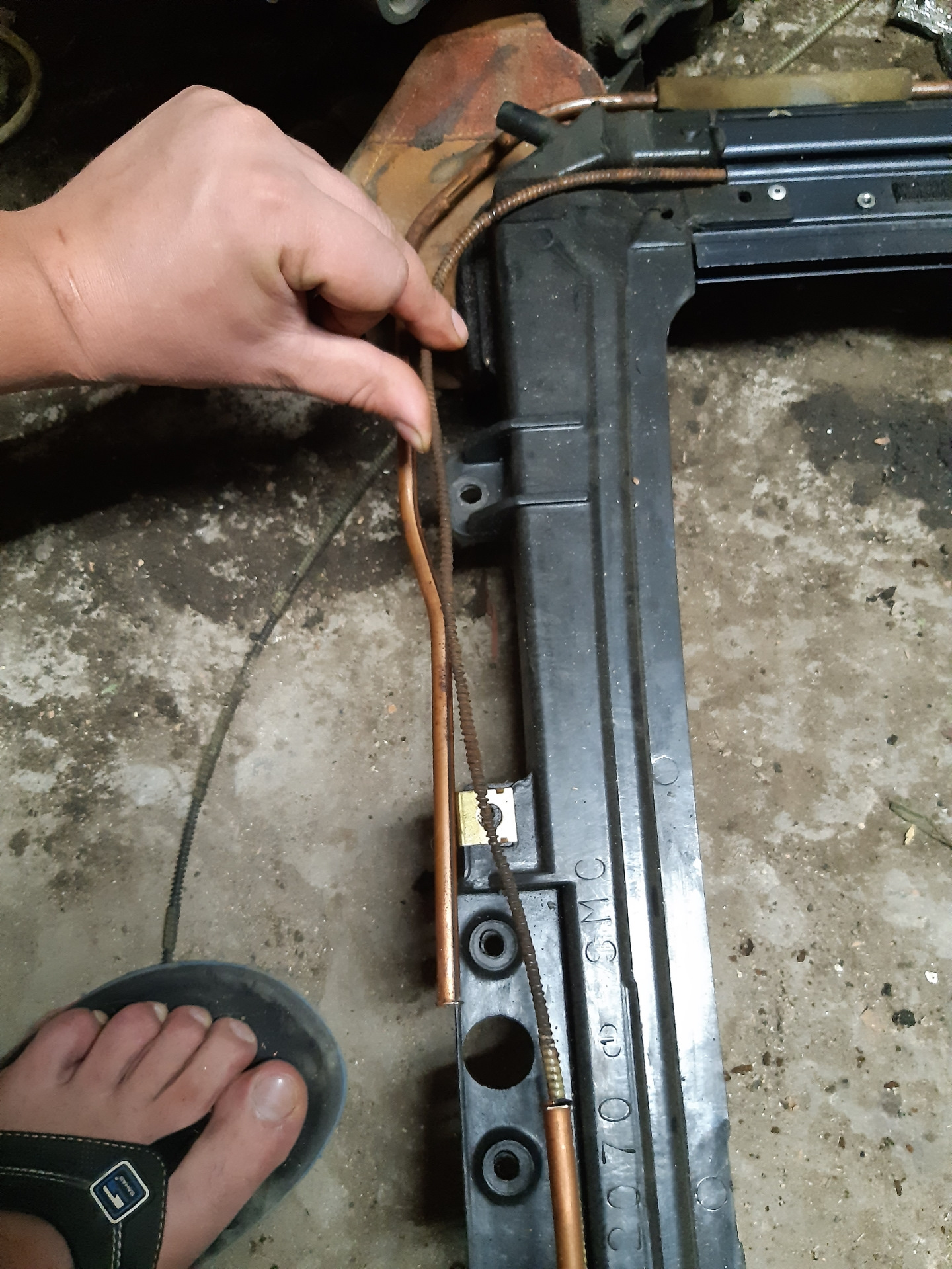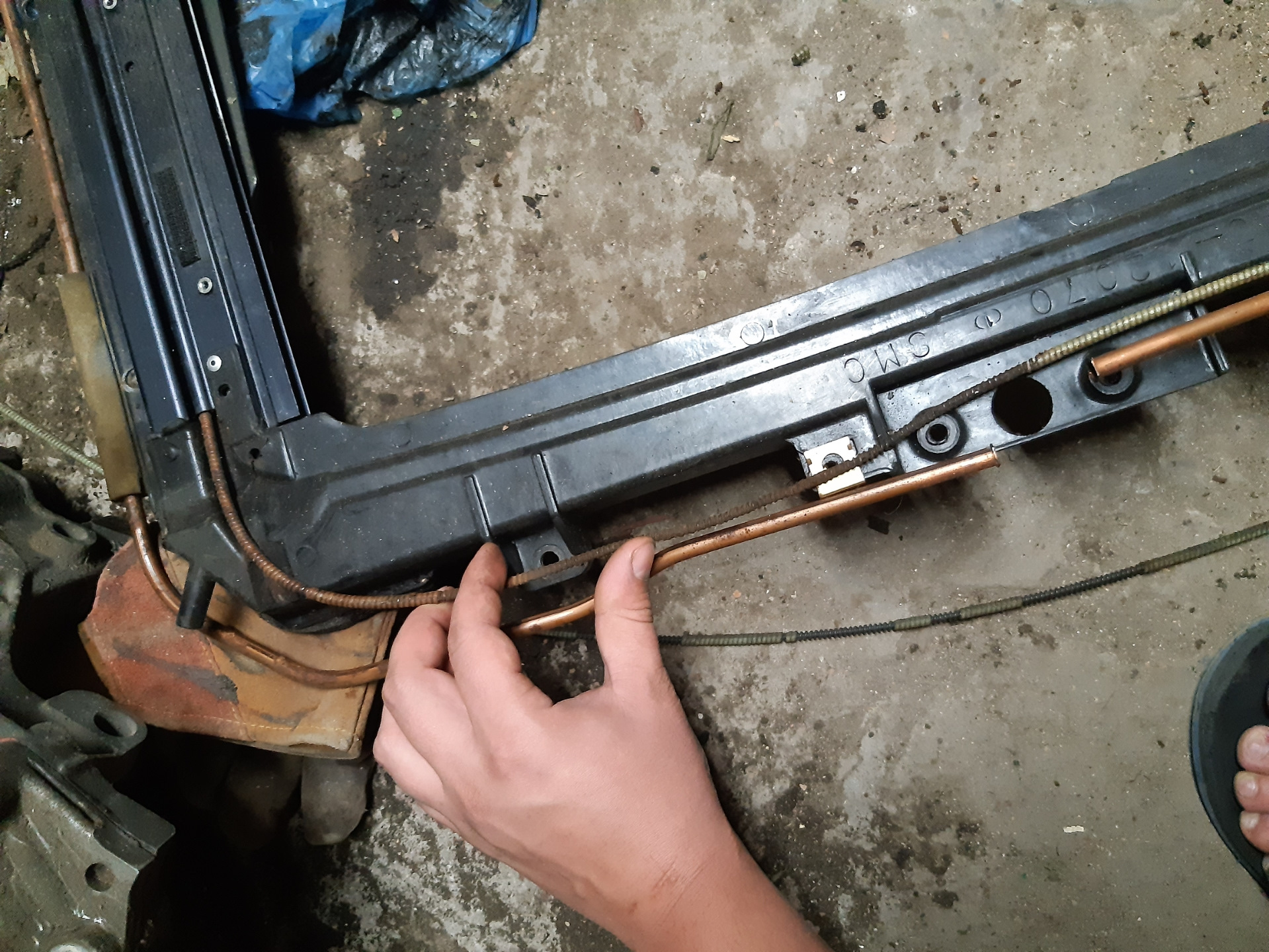 Ну что уж там, глаза боятся… купил медную трубку, развальцевал, точканул(чтоб сделать замки) согнул приблизительно по форме старого, смазал литолом и вуаля…нихуя не работает… 😁😁😁шучу…все работает…только пришлось еще мазать треснувший пластик эбоксидкой чтоб не протекало…