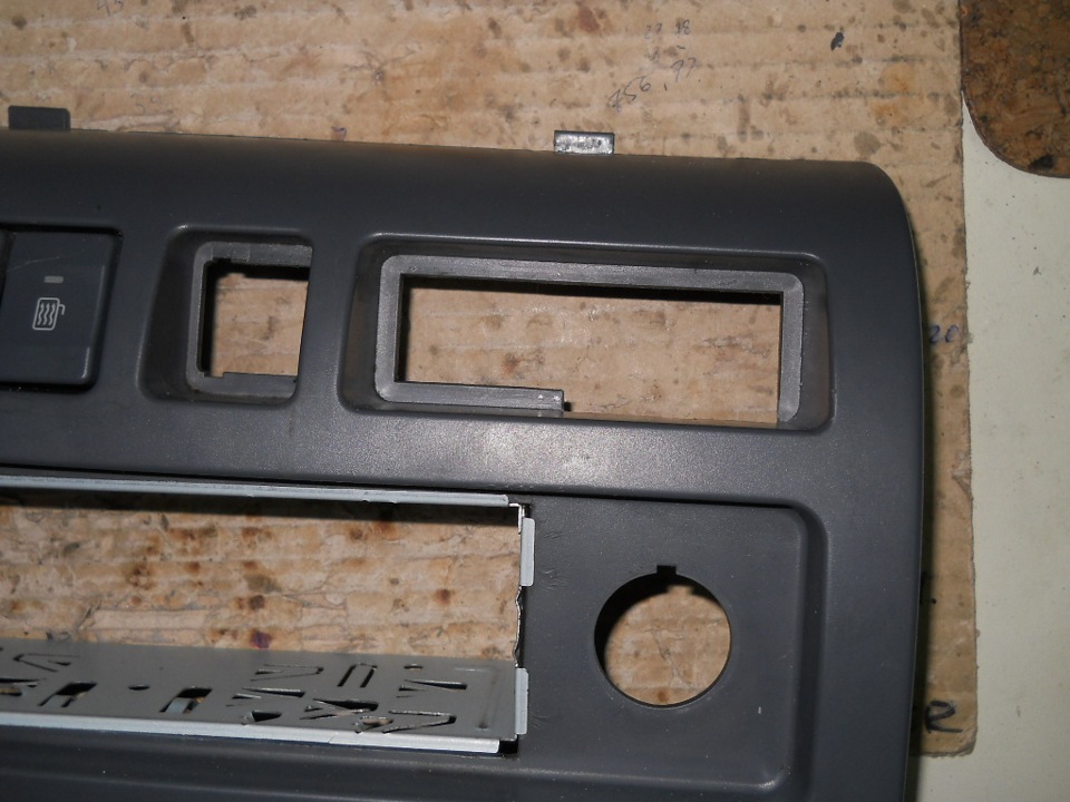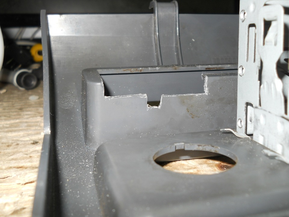 Дальше стал выбор места для врезки: тут выбор пал на подстаканник, который лично для меня "ни к селу, ни к городу". Вынимаем подстаканник, и оставляем от него только лицевую панель, в которой делаем вырез под наш разъём, предварительно сняв центральную консоль: