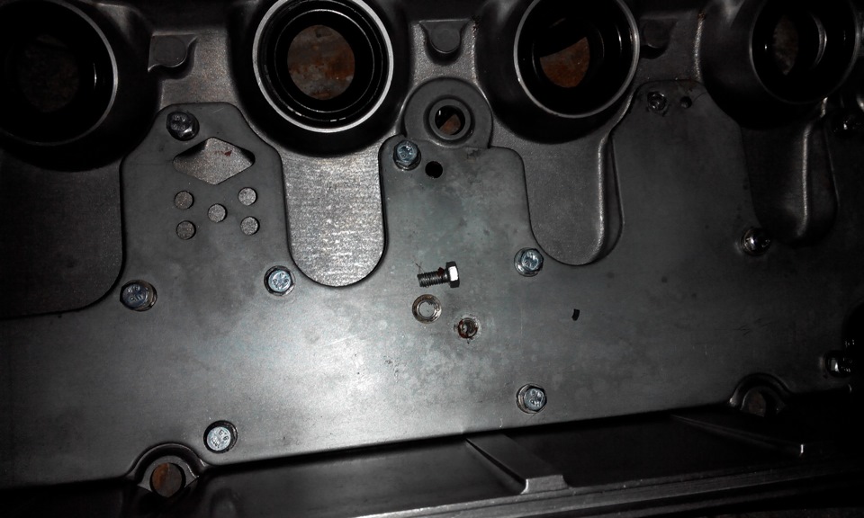 Залил Шелл за 900р, и как оказалось правильно сделал. Не прошло и недели, еще 3 литра выдавило в подкапотку со стороны впуска… Проблема оказалась в доработаной клапанной крышке. На время ее чистки была установлена старая с невтековой головы. А после замены и случилась беда. Виновником оказался болт, упершийся в постель распредвала и не давший сесть ей на место.